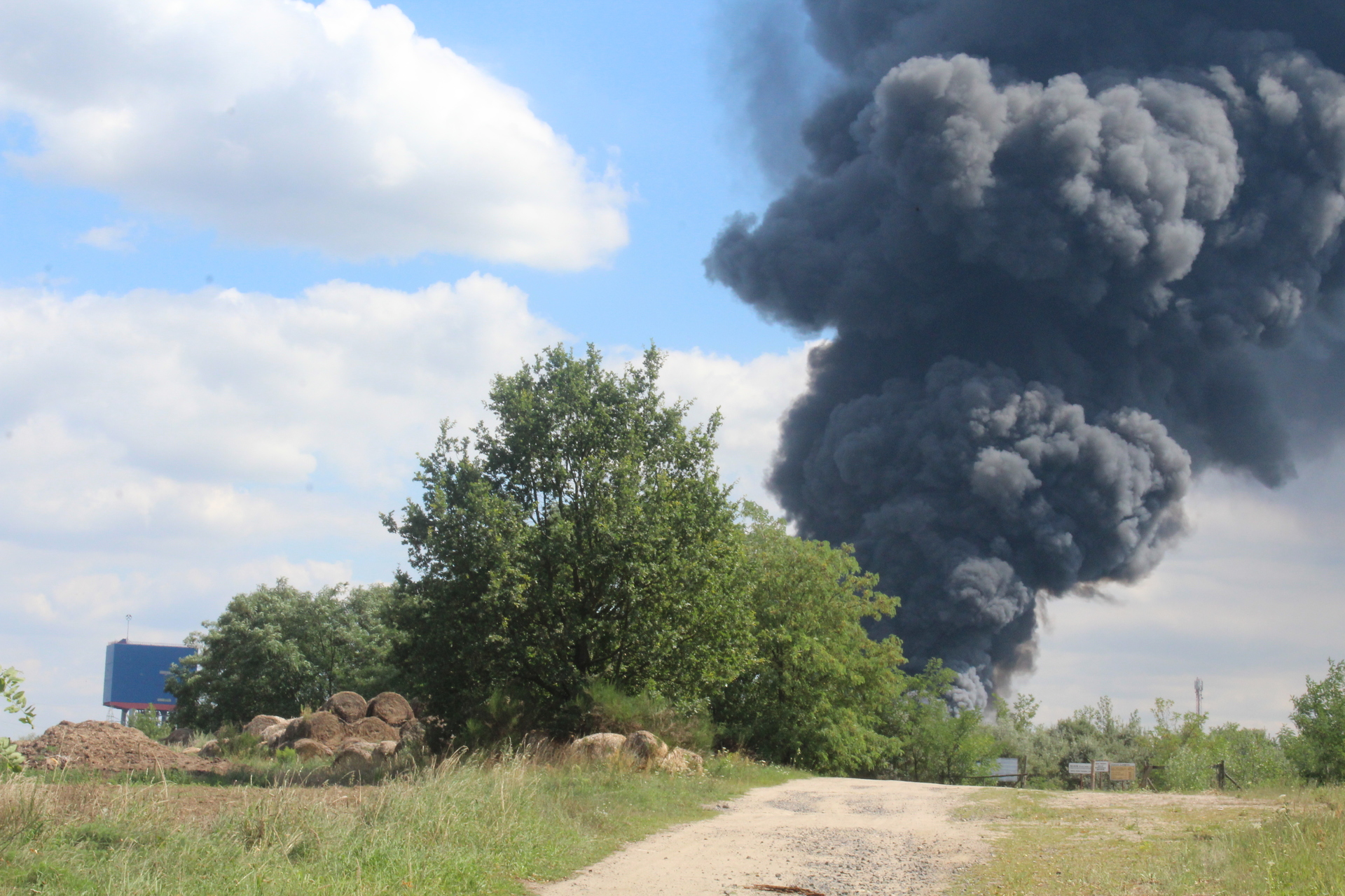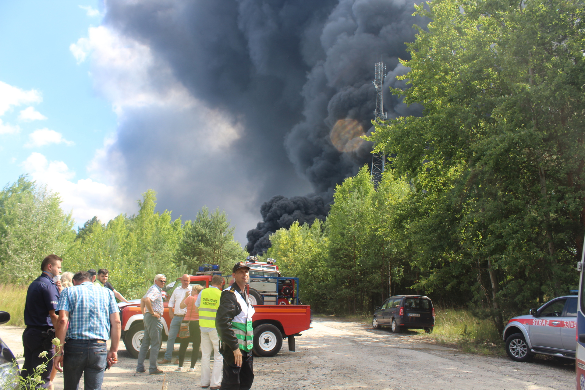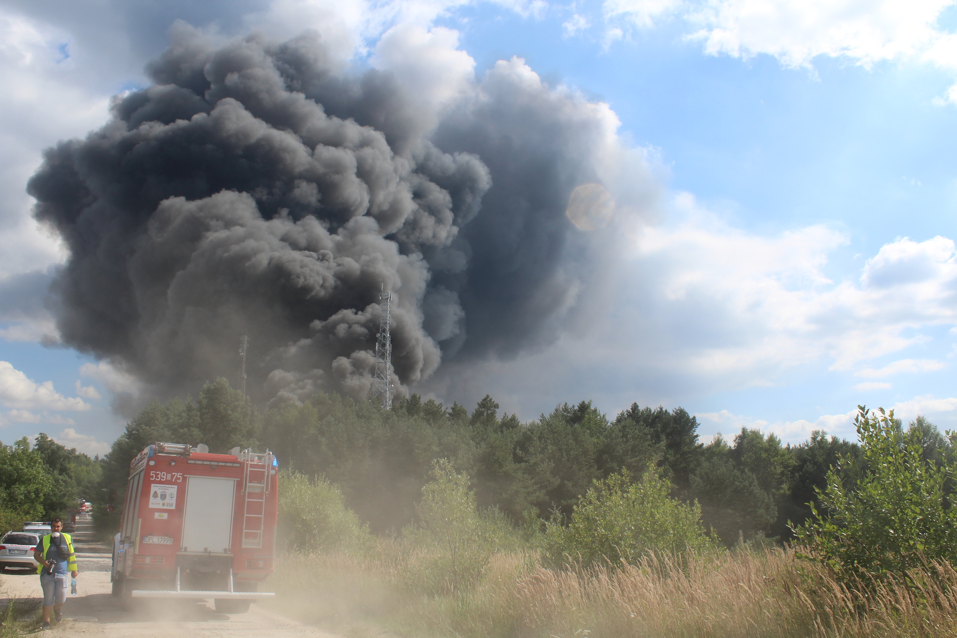 Pożar wybuchł w godzinach popołudniowych. Nad okolicą unoszą się ogromne, czarne kłęby dymu, które widoczne są z odległości aż kilkudziesięciu kilometrów.
