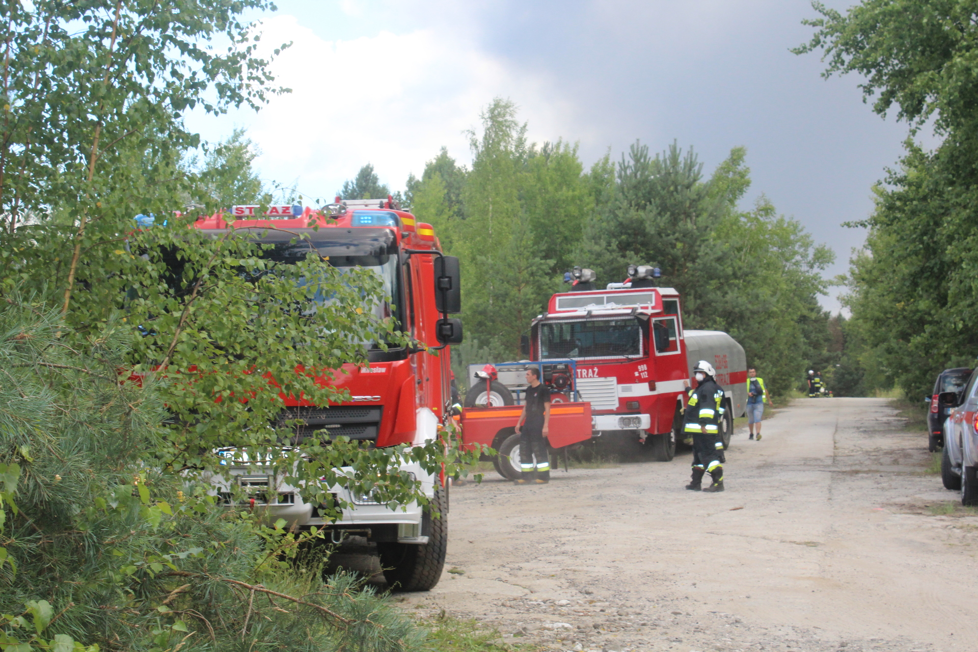 W akcji gaśniczej bierze udział ponad 30 jednostek straży pożarnej z całego rejonu, także z województwa lubuskiego, w tym samoloty gaśnicze. Na miejscu jest też karetka pogotowia. Często słychać wybuchy. Wokół są lasy, więc strażacy starają się też, by ogień się nie rozprzestrzeniał.