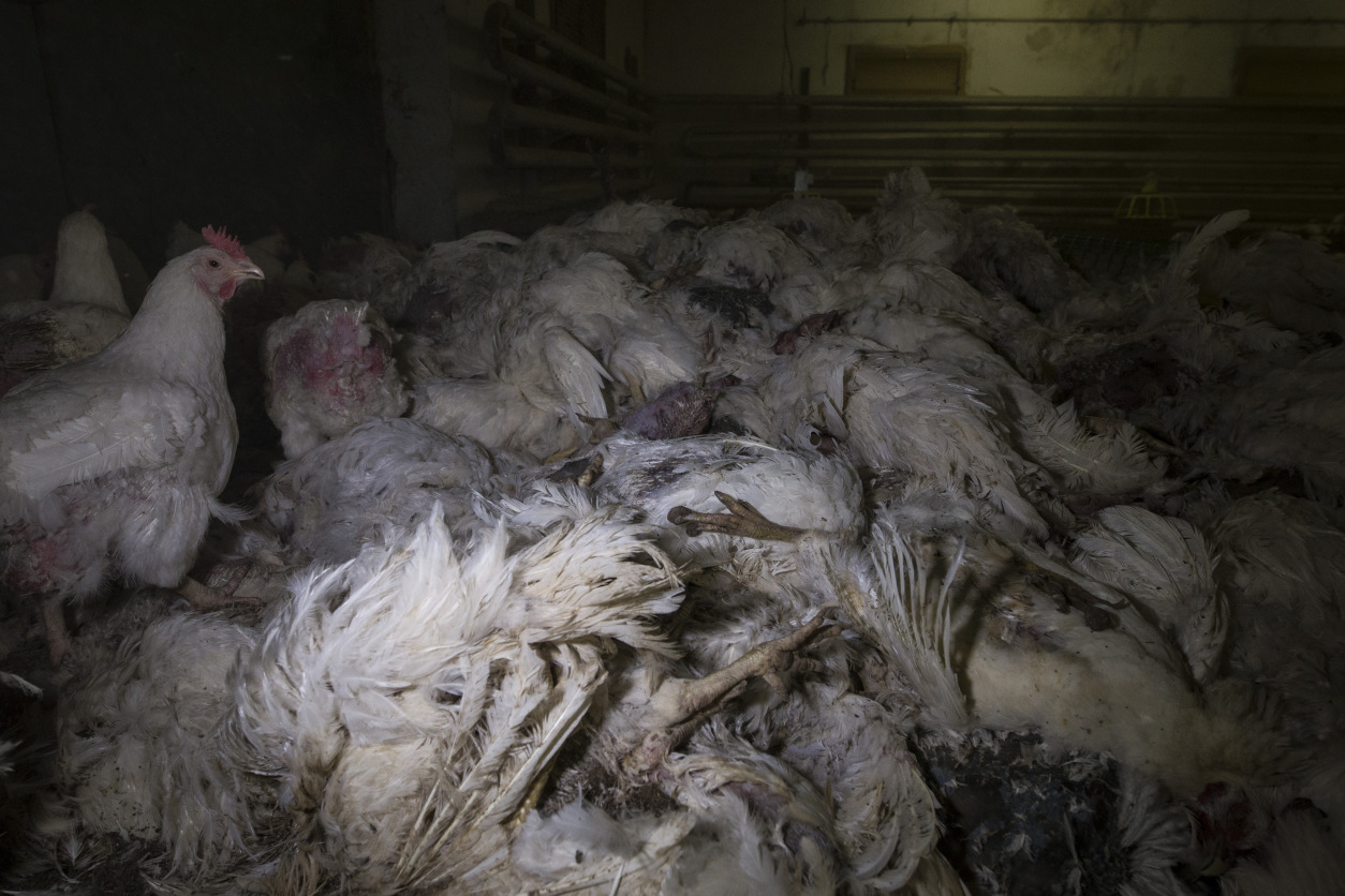 – W dwóch z czterech kurników leżały stosy martwych zwierząt. Kury układano też na zewnątrz, na przyczepie i w koszach na śmieci – opisuje Bartosz Zając ze Stowarzyszenia Otwarte Klatki. – Kury w pozostałych dwóch kurnikach były w nienajgorszym stanie – podkarmiane miały najpewniej trafić do ubojni. Taki był pomysł właściciela na zlikwidowanie stada. Ptaki, które przeżyły w dwóch pozostałych kurnikach były sine, dogorywające i nikt z pewnością by za nie nie zapłacił – ubolewa aktywista.