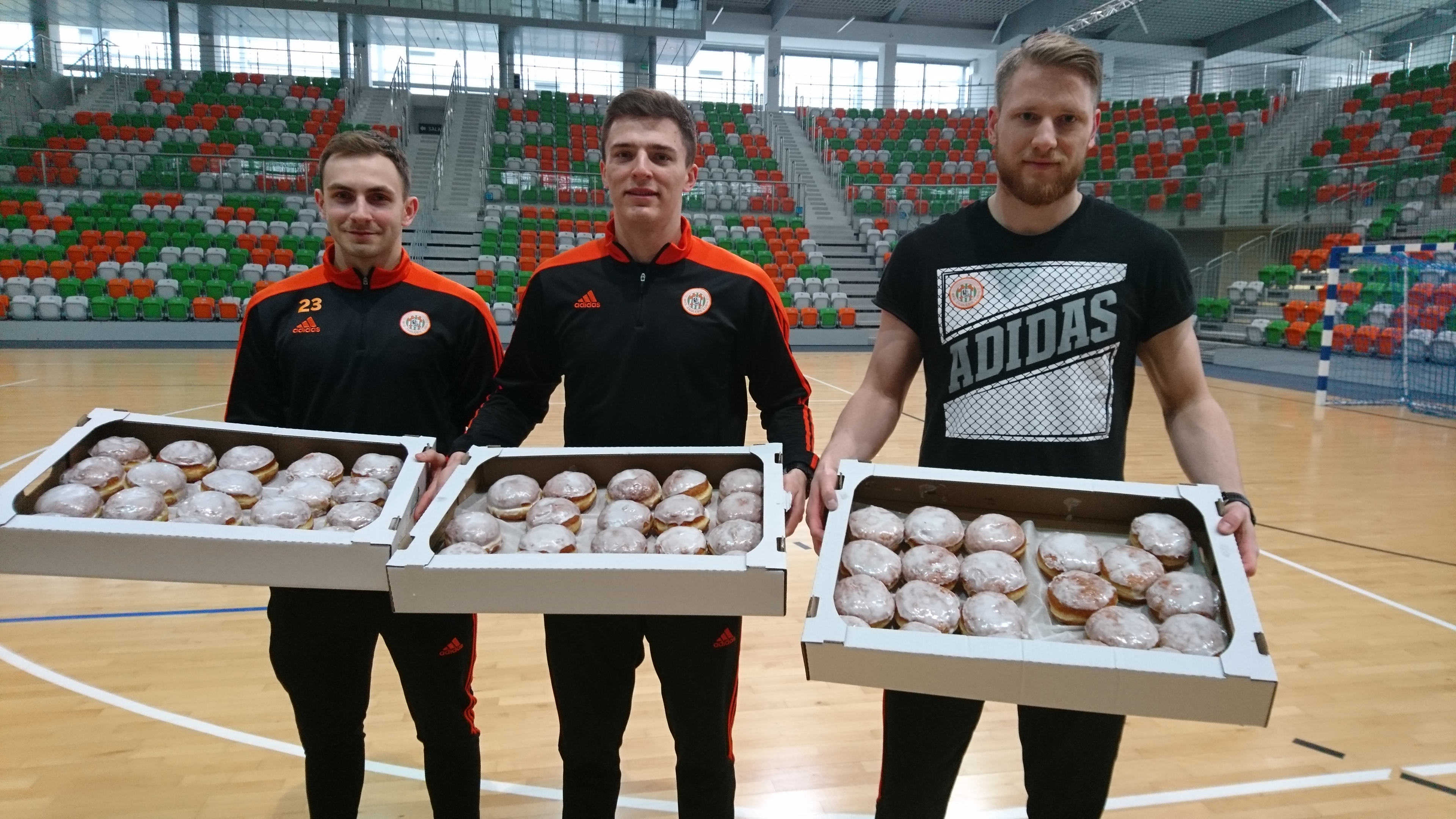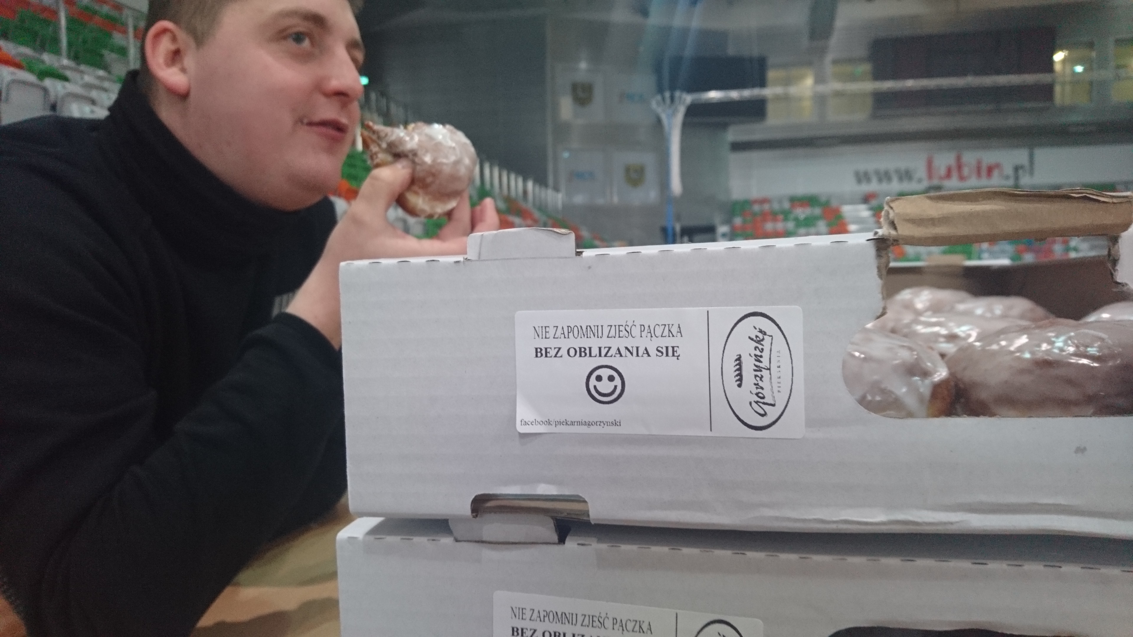 – Dobrze, że trenujemy, bo te dwa pączki, które dzisiaj zjem, pewnie szybko spalę. Jeśli chodzi o spalanie kalorii, to na pewno polecam bieganie, bieganie i jeszcze raz bieganie. Dobra jest też siłownia. Można na przykład, jedząc pączka biegać na bieżni – żartuje Jakub Skrzyniarz, bramkarz Zagłębia Lubin.