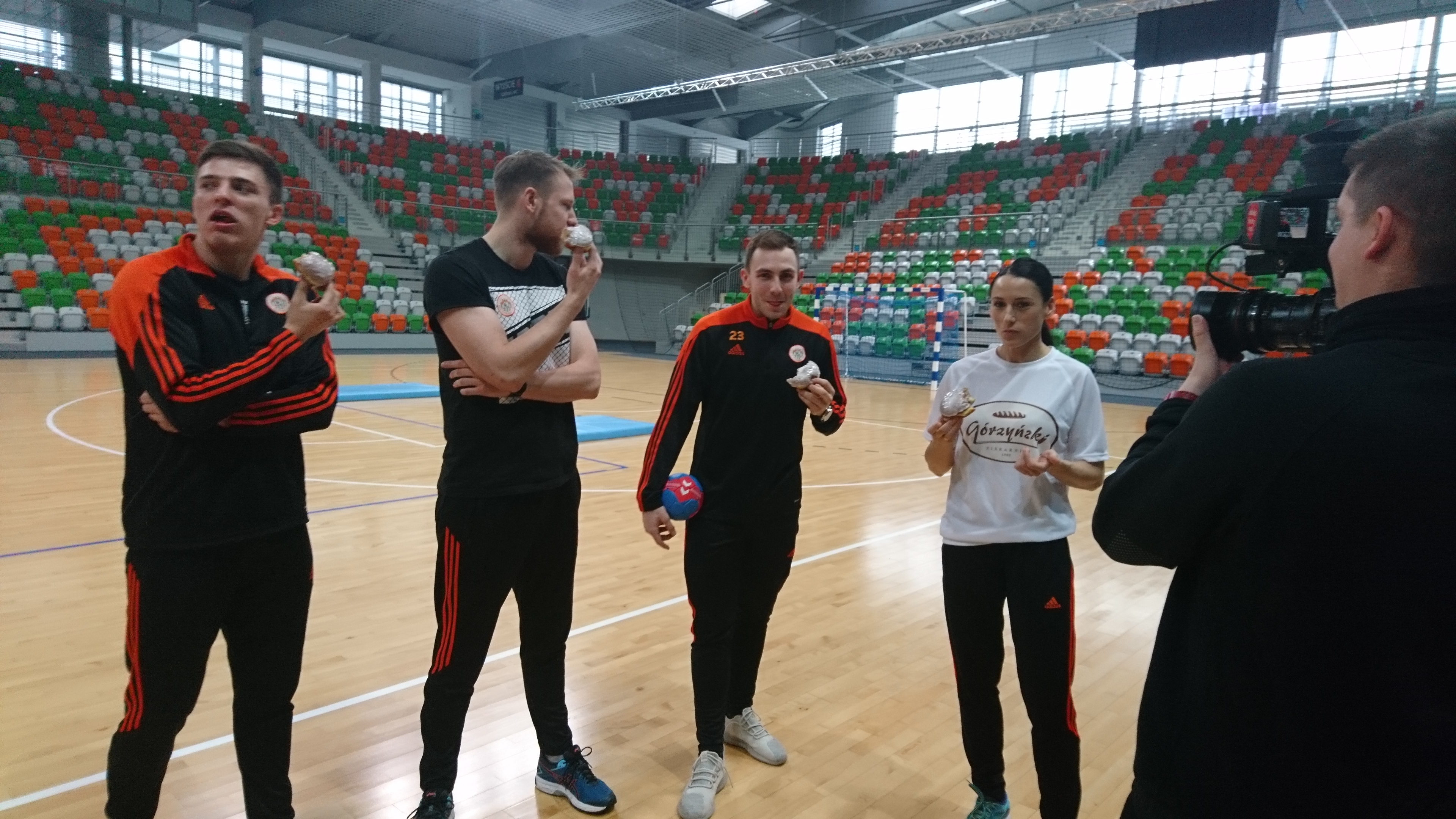 Najpierw była rozgrzewka, a później zajęcia z piłki ręcznej. Była to doskonała okazja do spalenia kalorii po pączkach, którymi wraz z Piekarnią Górzyński częstowaliśmy uczestników akcji „Ręczna z Klasą”.