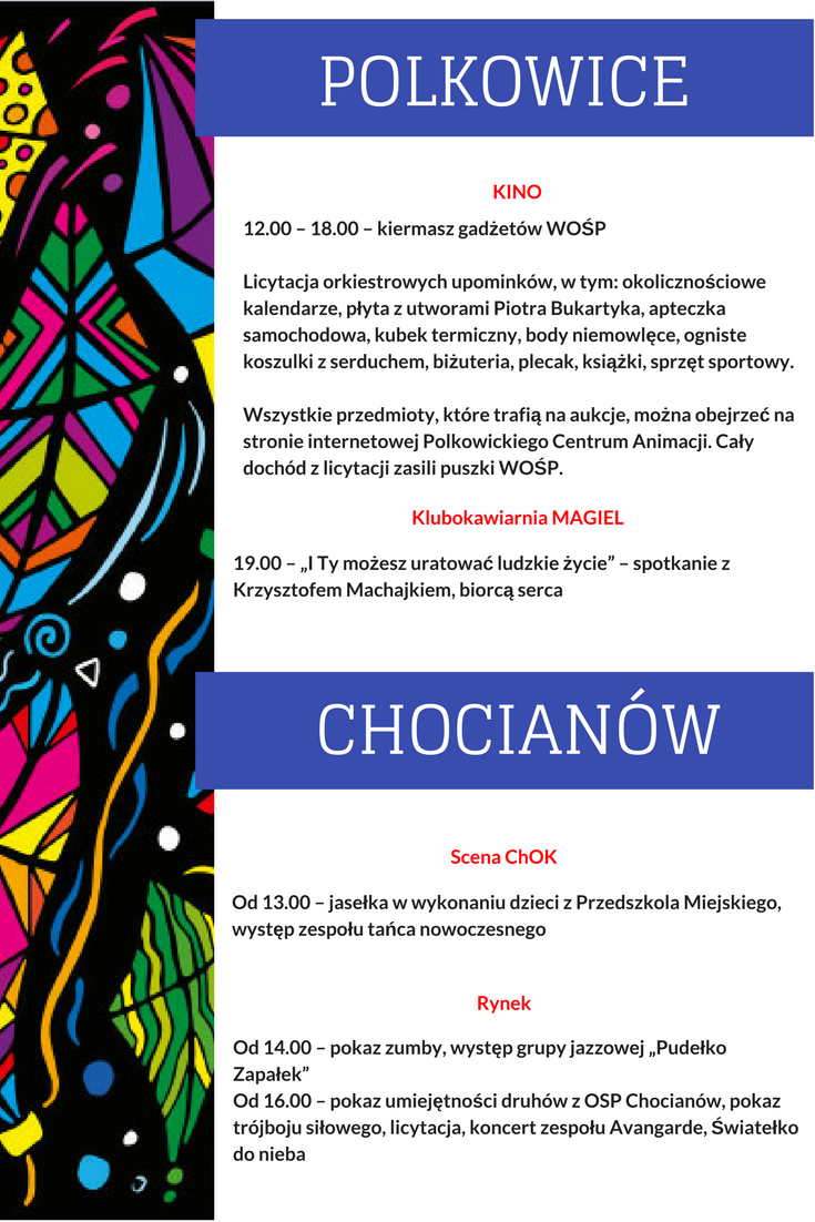 WOŚP zagra oczywiście także i w naszym regionie. Oto krótki przegląd najważniejszych wydarzeń, podczas których można będzie dołożyć swoją cegiełkę do orkiestrowego celu.