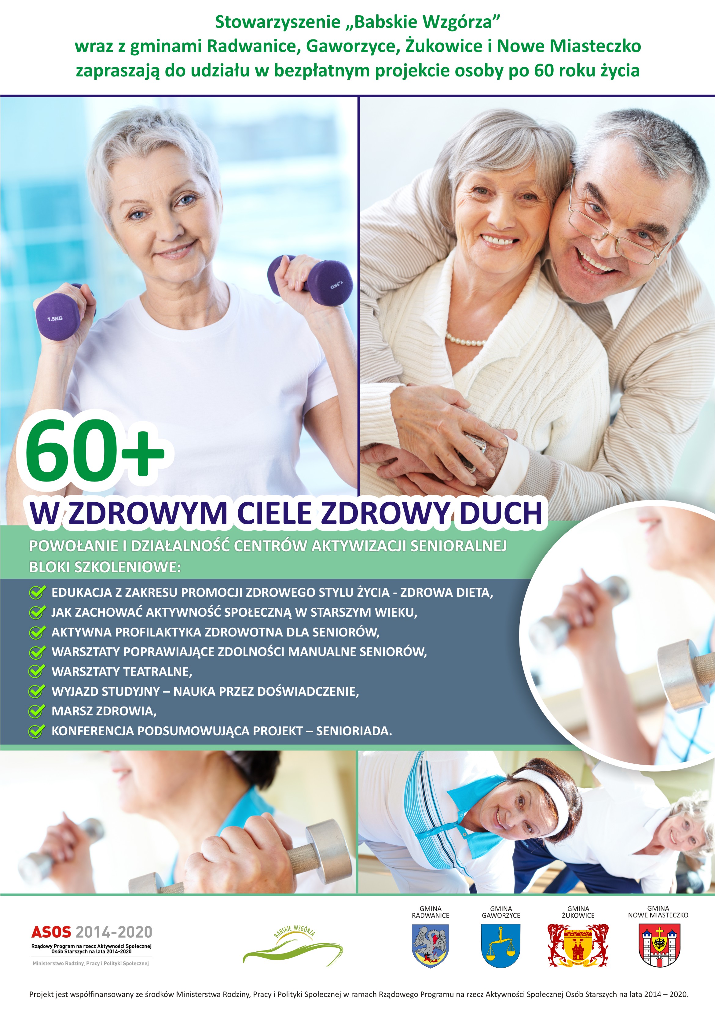 Projekt pn. „W zdrowym ciele zdrowy duch” to propozycja Stowarzyszenia „Babskie Wzgórza”, działającego na obszarze Wzgórz Dalkowskich, dla mieszkańców gmin: Gaworzyce, Radwanice, Żukowice i Nowe Miasteczko – w wieku 60+. Można już się zapisać. Zapowiada się ciekawie.