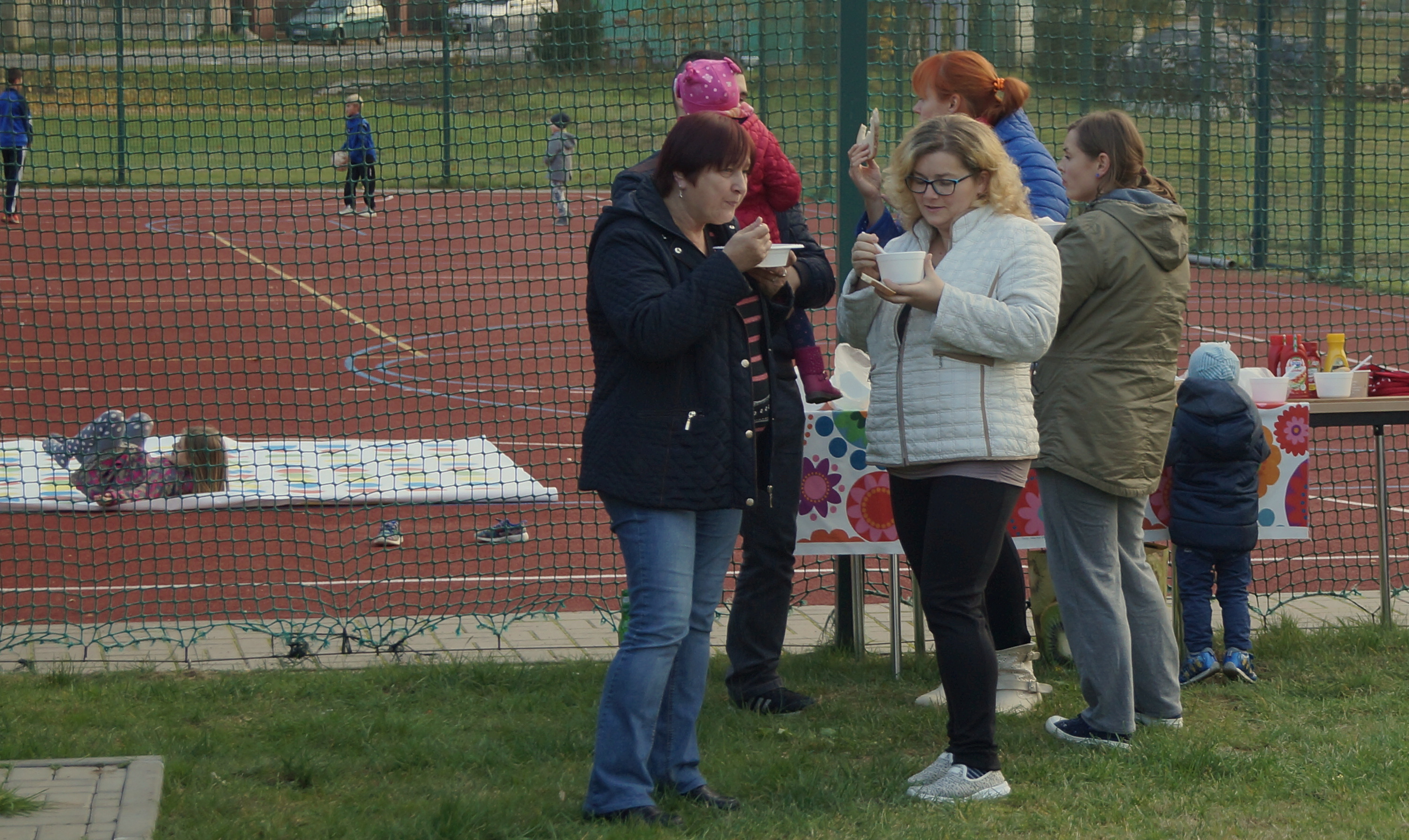 Dzięki  zabawie na świeżym powietrzu, najmłodsi uczestnicy spotkania przy kociołku zupełnie zapomnieli o komputerze, fejsbuku czy tablecie. Na lokalnym boisku czekały na nich duże gry planszowe, olbrzymie bańki mydlane i rozgrywki piłki nożnej.