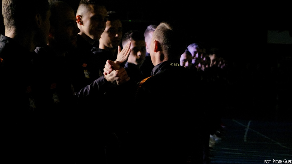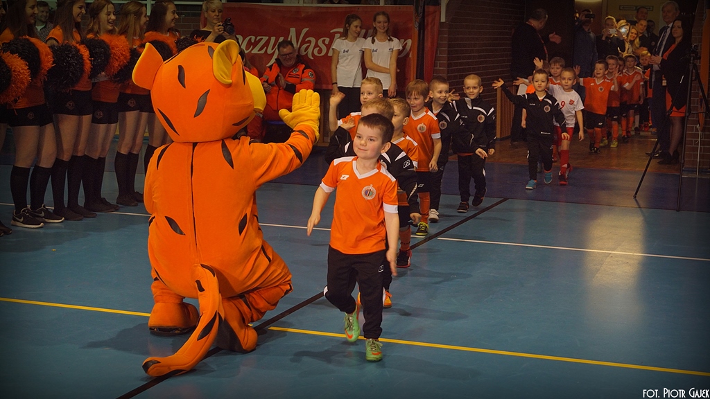 To kolejny rekord, jeśli chodzi o liczbę osób wchodzących w skład drużyn. Młodzi i starsi, chłopcy i dziewczęta – każdy sportowiec na halę wbiegał przy burzy braw i okrzykach publiczności. Nowością był pokazowy mecz juniorów młodszych w kulach śmiechu. Całość ubarwiły występy wokalne Aleksandry Mioduszewskiej i Kai Urban ze Studia Talentów i zjawiskowy taniec Cheerleaderek Chrobrego. Najdłuższe i najbardziej efektowne było przedstawienie zawodników i sztabu szkoleniowego pierwszego zespołu. Pierwszoligowcy na boisku przed własną publicznością zaprezentują się już na nadchodzącą sobotę, 4 marca.