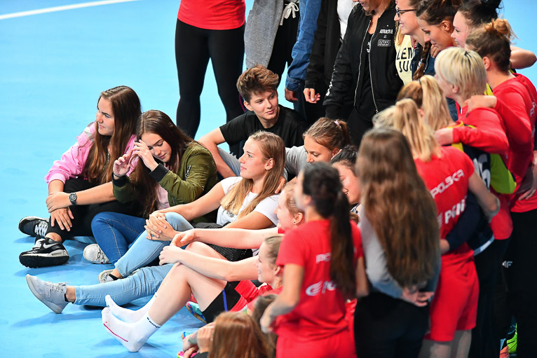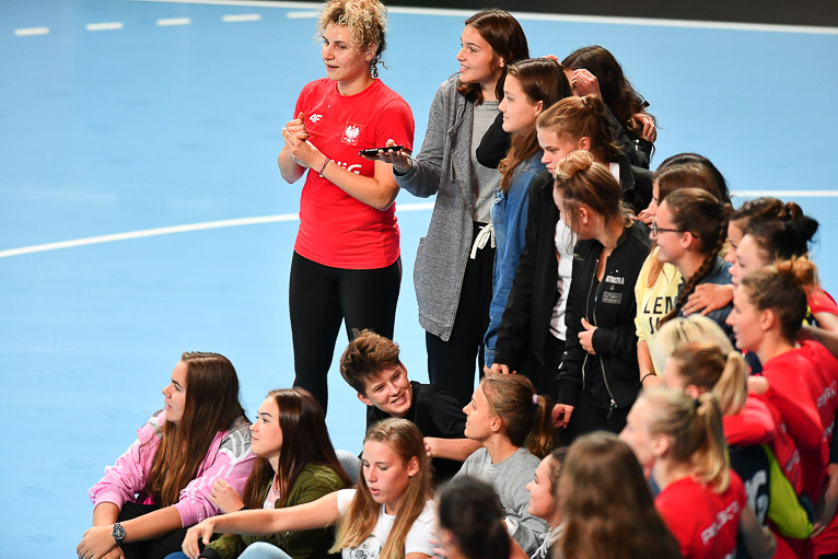 Kadra narodowa od czwartku przygotowuje się do statu w eliminacjach Mistrzostw Europy. Dziś odbył się trening otwarty dla młodych adeptów piłki ręcznej. Uczniowie Szkoły Mistrzostwa Sportowego Zagłębie Lubin podpatrywali trening pierwszej i drugiej kadry – Dla nas to bardzo ważne wydarzenie. Mogłyśmy zobaczyć, jak trenuje reprezentacja Polski i wykorzystać to w naszych treningach. Bardzo się cieszymy, że mieliśmy okazję zobaczyć reprezentację, porozmawiać z zawodniczkami i zrobić sobie zdjęcia – mówi Katarzyna Drzemicka z SMS Zagłębie Lubin.