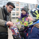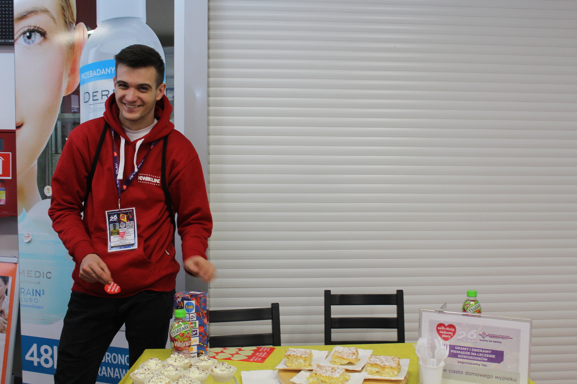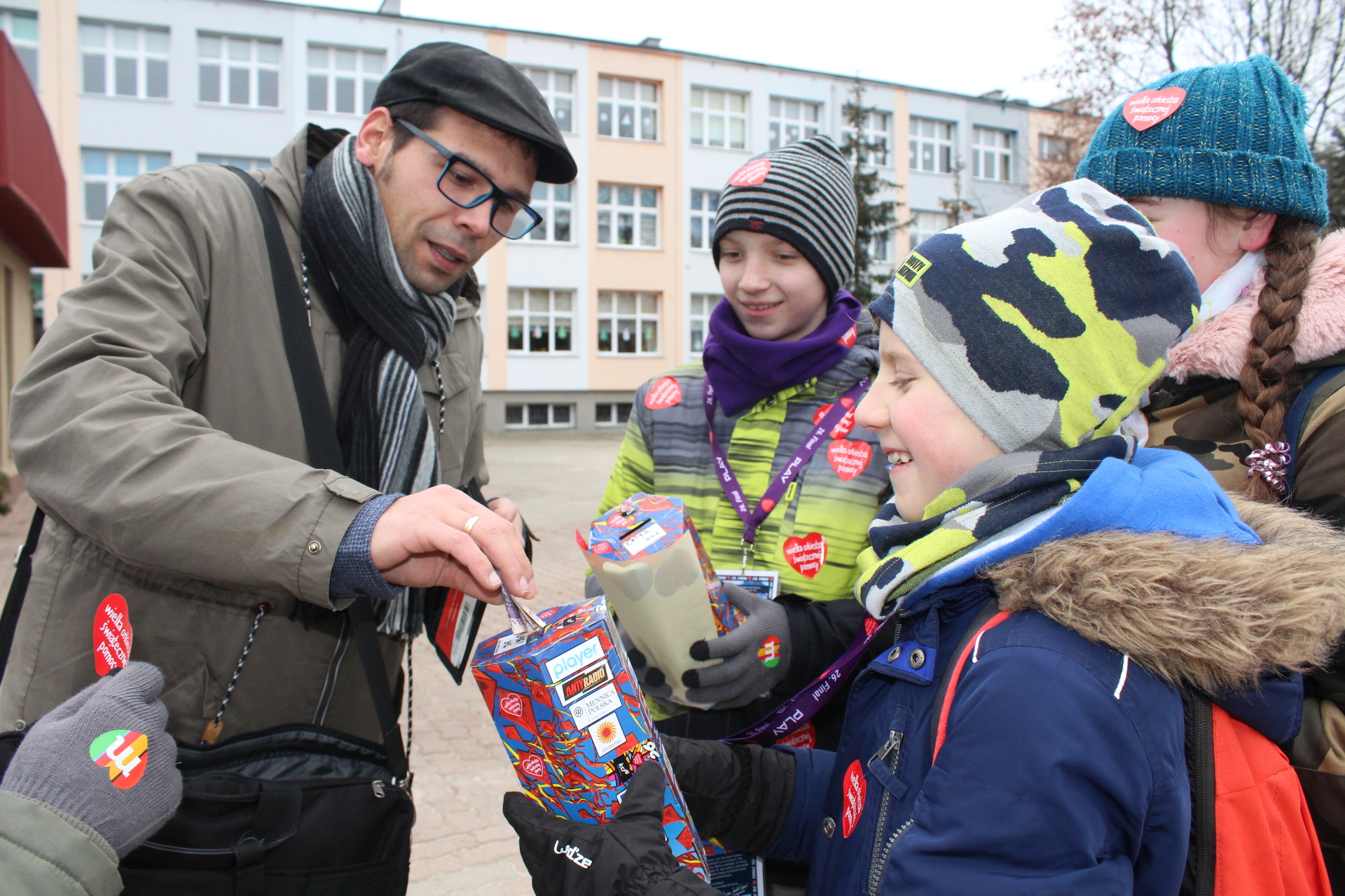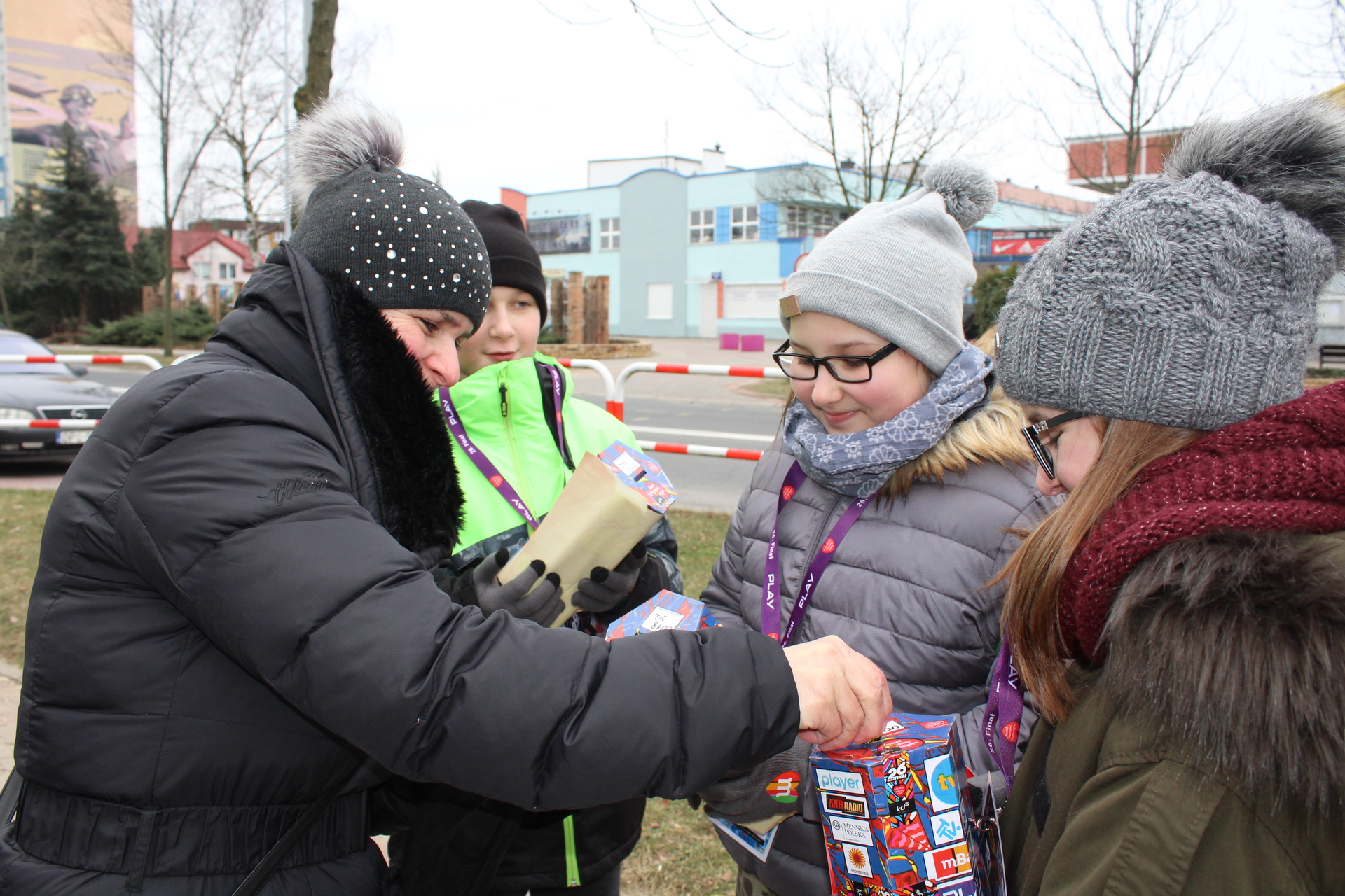 Wśród wolontariuszy wypatrzyliśmy uczniów z Integracyjnej Szkoły Podstawowej w Jędrzychowie, którzy kwestowali pod okiem opiekuna. Mimo dość mroźnej aury humory im dopisywały. Jak nam powiedzieli, „jeden pan wrzucił do trzech puszek po 50 złotych”.