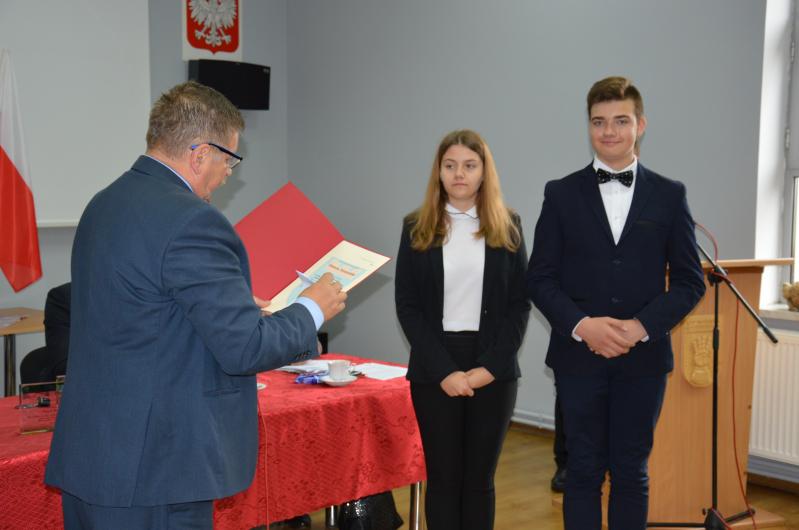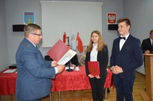 Zanim jednak doszło do głosowania nad absolutorium, włodarz miasta wręczył nagrody  obecnym na sesji uczniom za wybitne osiągnięcia w nauce. Otrzymali je: Kornelia Zdziechowicz, Joanna Domańska, Marcin Leśniak z Zespołu Szkolno-Przedszkolnego w Świerzawi. Wymieniona trójka wykazałą się bardzo wysokim poziomem znajomości teoretycznych i praktycznych zagadnień dotyczących ekonomii i bankowości, logicznym myśleniem, kreatywnością i pracą w grupie, zajmując drugie miejsce w Finale Ogólnopolskiego Konkursu „Potyczki ekonomiczne 2018”. Sukces ten nie byłby możliwy gdyby nie nauczyciel Piotr Melnerowicz (nieobecny na sesji) i jego trud włożony w przygotowanie uczniów do konkursu.
