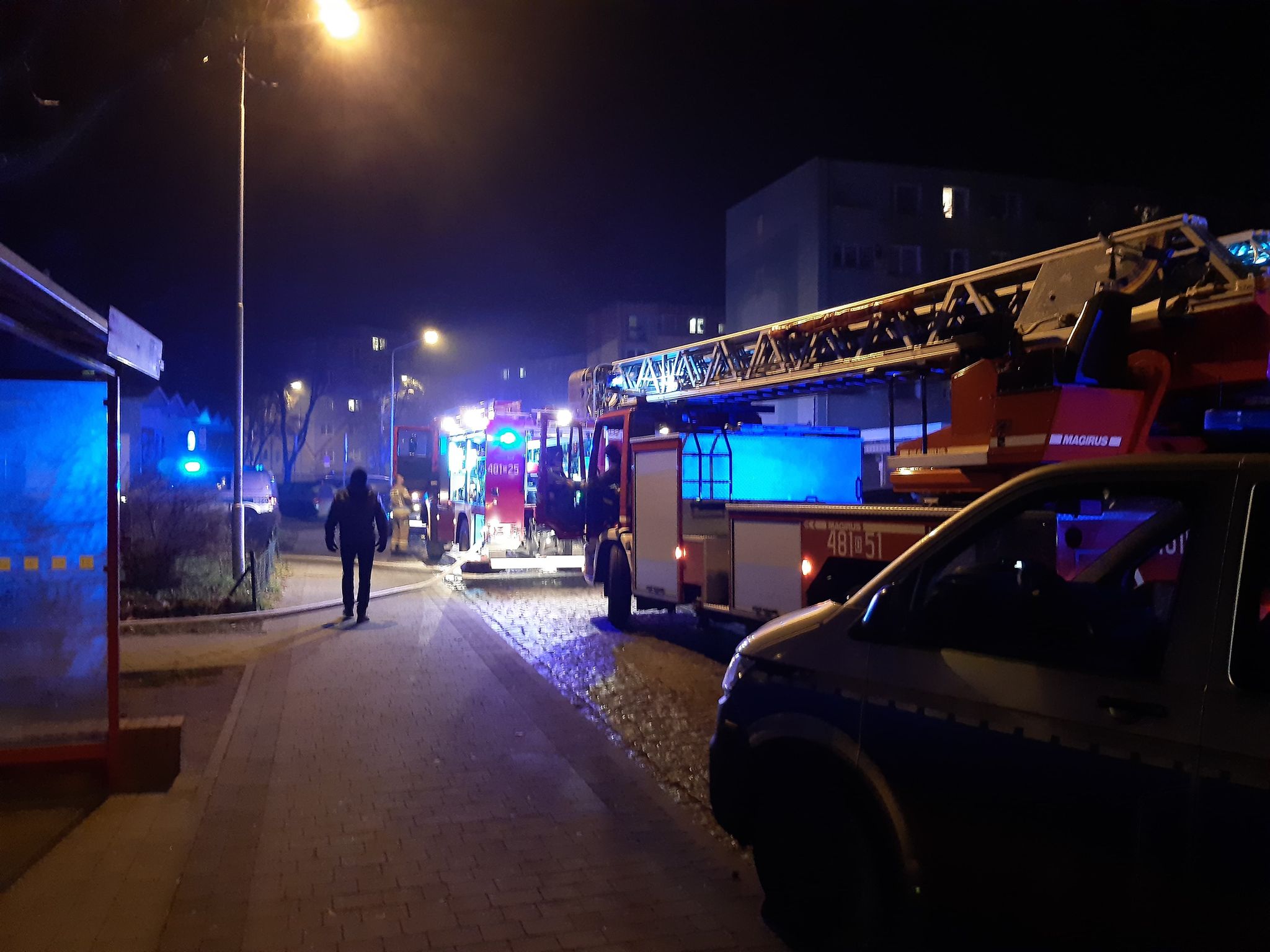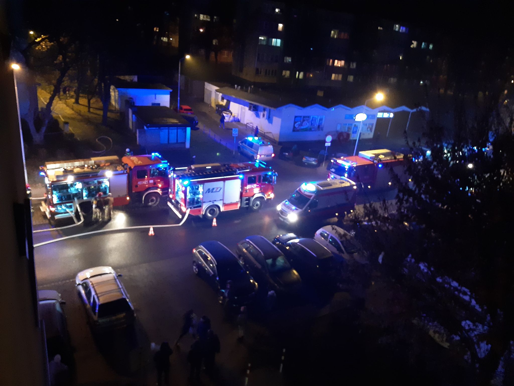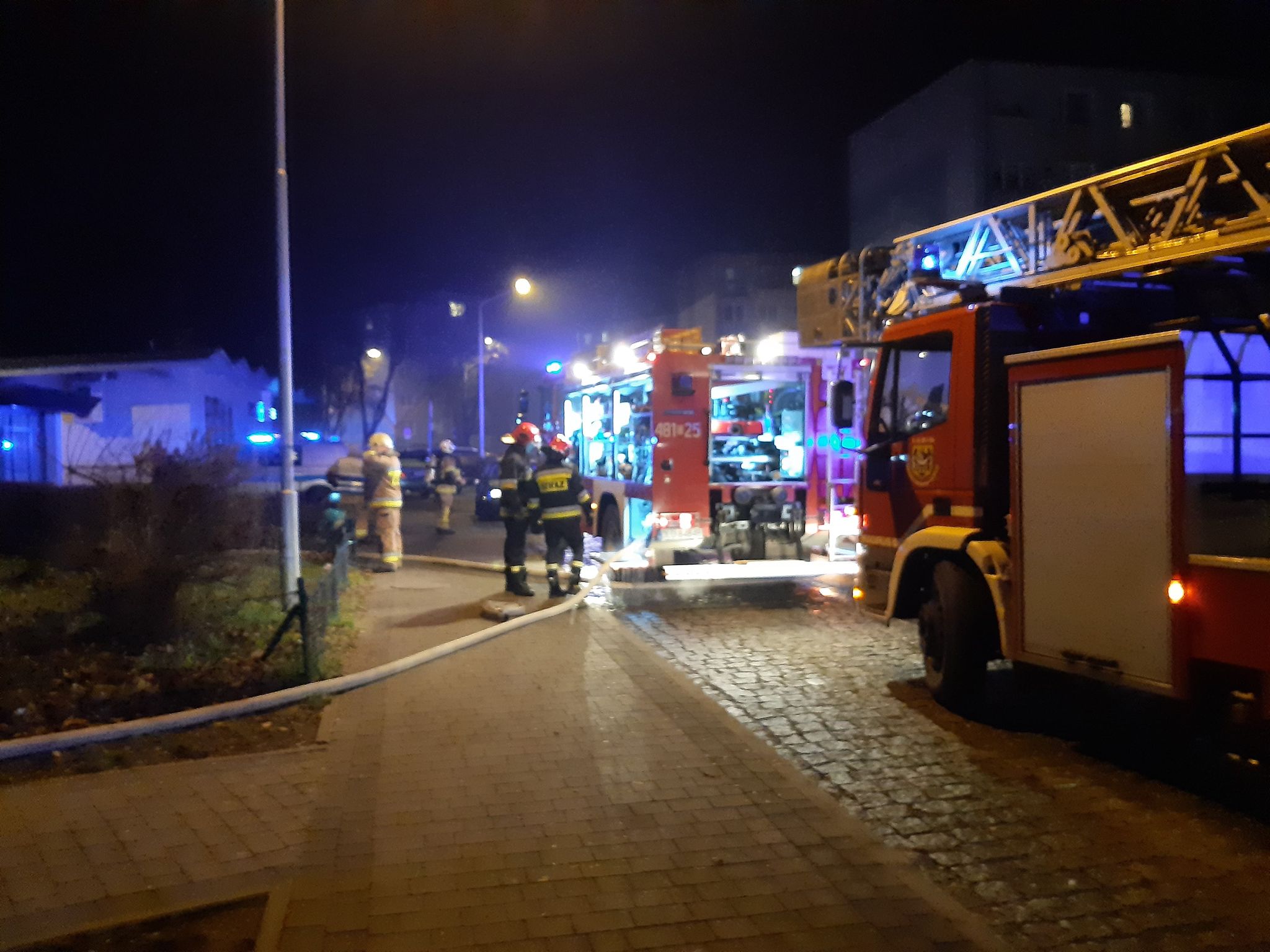 Zgłoszenie o pożarze wpłynęło do dyżurnego lubińskiej komendy straży pożarnej około godz. 20. Na miejscu oprócz strażaków, pojawiło się także kilka policyjnych patroli oraz karetka pogotowia.