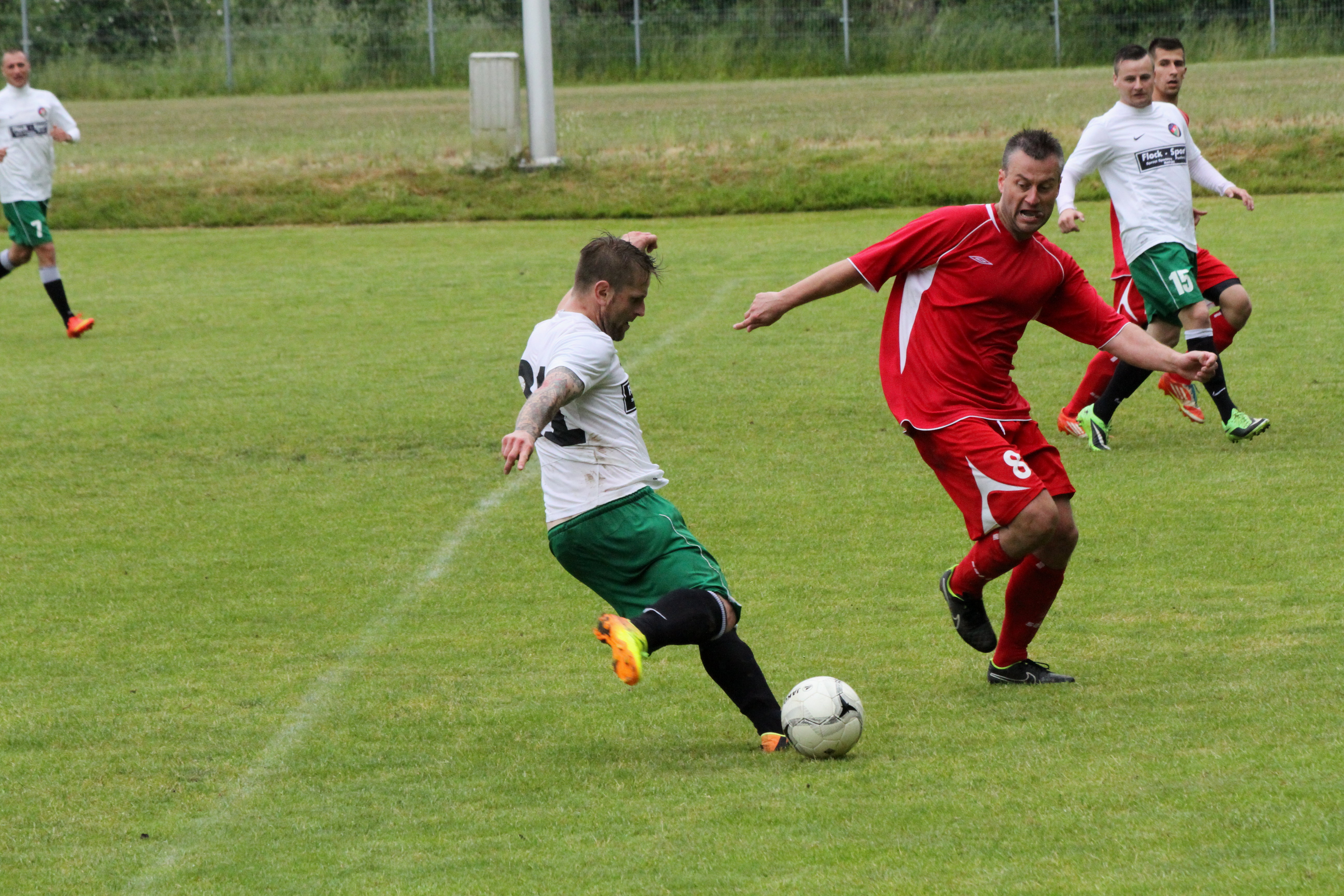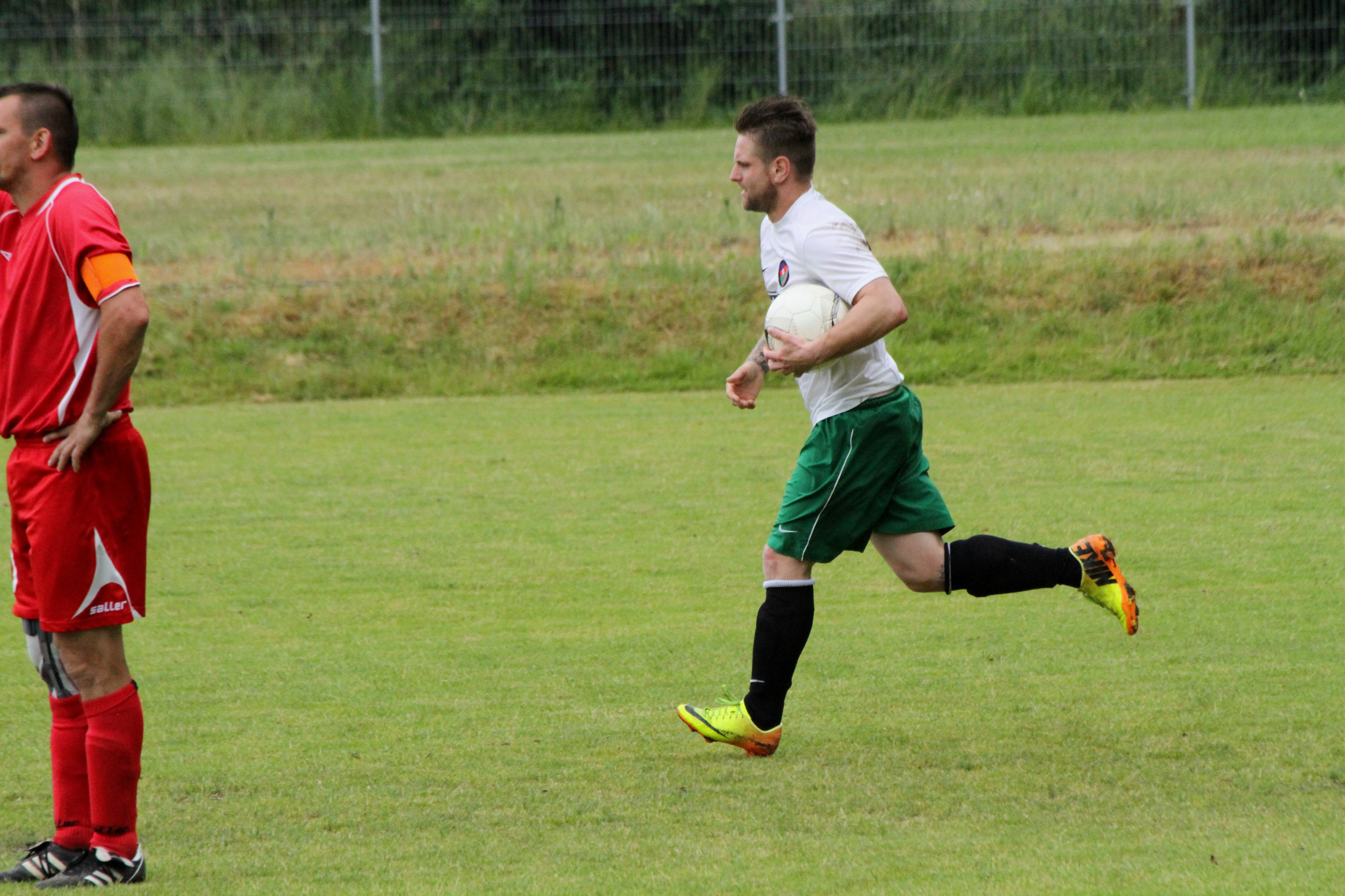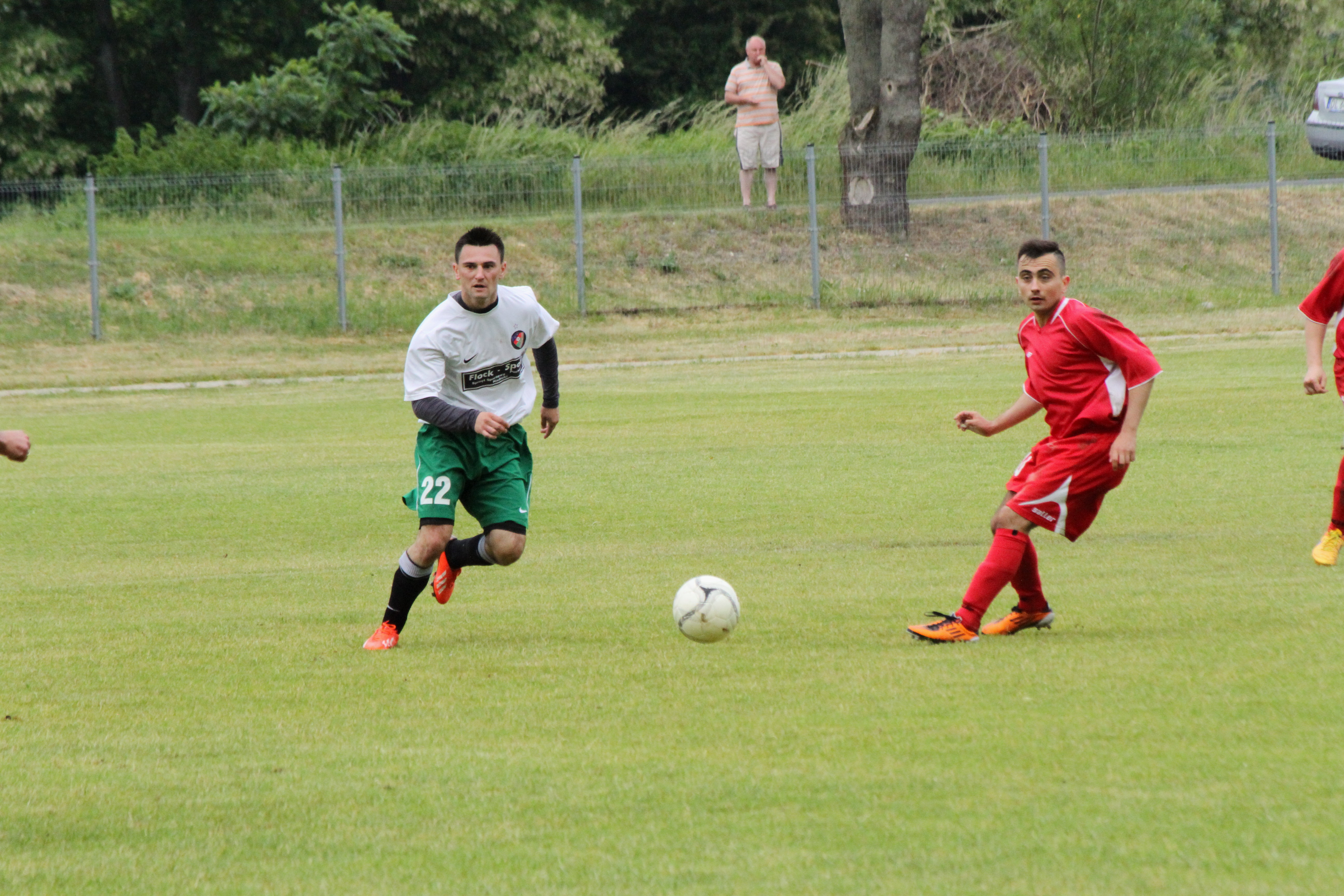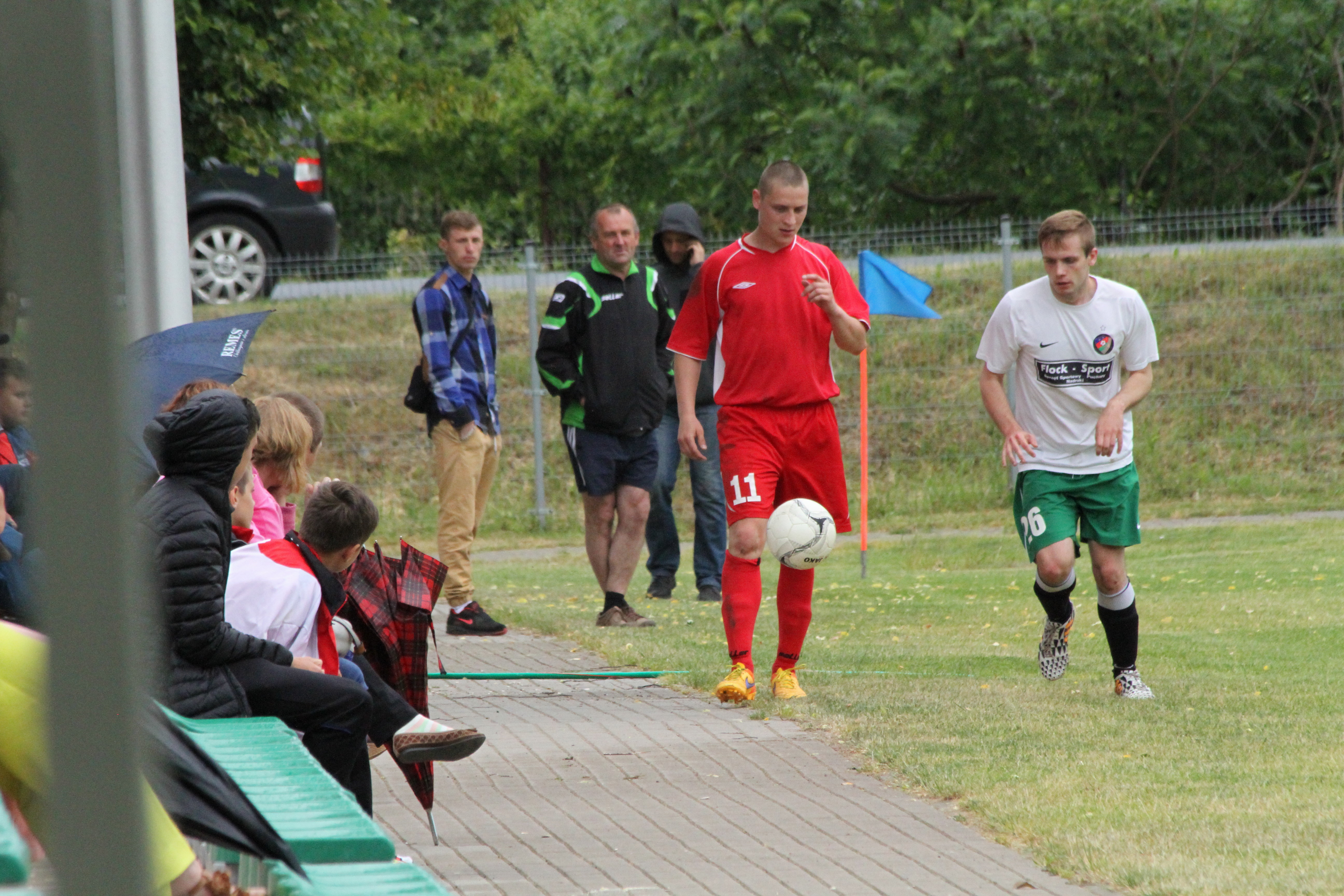 Spotkanie weszło na niesłychanie wysokie obroty w 22. minucie gdy prowadzenie dla Kaczawy dał Dominik Wiśniewski. Dwie minuty później do wyrównania doprowadził jednak Łojek, by po kolejnej minucie drugiego gola dla Bieniowic zdobył Wiśniewski. Sytuacja, w której w przeciągu trzech minut padły trzy bramki jest bardzo rzadka nawet w niższych ligach. Do przerwy utrzymywało się jednobramkowe prowadzenie Kaczawy. Dopiero w 55. minucie podwyższył je Sylwester Brzózka. Ostatnie pół godziny to już prawdziwa wymiana ciosów – Arkon ciągle atakował, a Kaczawa wyprowadzała niebezpieczne kontrataki. Na boisku w Bieniowicach zobaczyliśmy jednak już tylko jedną bramkę i jej autorem był Marcin Grabowski a spotkanie zakończyło się zwycięstwem Kaczawy 3:2.
