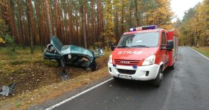 Do groźnie wyglądającej sytuacji doszło m.in. w sobotę, 3 października na drodze między Chocianowem a Przemkowem. Na miejscu strażacy zastali samochód osobowy znajdujący się w rowie. Jak wstępnie ustalono, auto wypadło z drogi, po czym uderzyło w drzewo. Siła uderzenia musiała być bardzo duża. Przedmioty z pojazdu leżały porozrzucane w promieniu kilkudziesięciu metrów. Na szczęście, dwie jadące samochodem osoby nie doznały poważniejszych obrażeń.