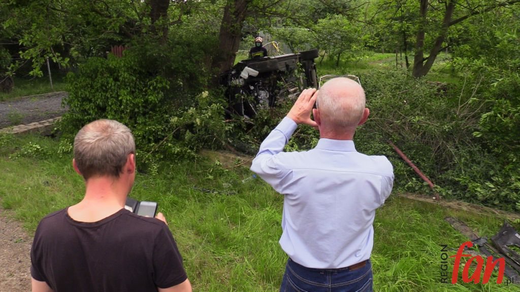 Części z rozbitego samochodu leżały w promieniu kilkunastu metrów. Mieszkańcy chcieli poszkodowanemu pospieszyć z pomocą, jednak ten oddalił się w kierunku pól. Strażacy z JRG Legnica i OSP Janowice Duże zabezpieczyli pojazd przed ewentualnym pożarem i ruszyli na poszukiwania poszkodowanego. Dołączyli do nich legniccy kryminalni. Na miejscu z pomocą czekał Zespół Ratownictwa Medycznego. Po kilkudziesięciu minutach, ok. 3 km od miejsca zdarzenia zatrzymano sprawcę kolizji. Prawdopodobnie nie tylko prędkość i fatalny stan drogi był przyczyną tego zdarzenia. Od mężczyzny wyczuwalna była woń alkoholu, możliwe że był pod wpływem innych środków odurzających. Przez kilkadziesiąt minut ruch w miejscu zdarzenia odbywał się wahadłowo.