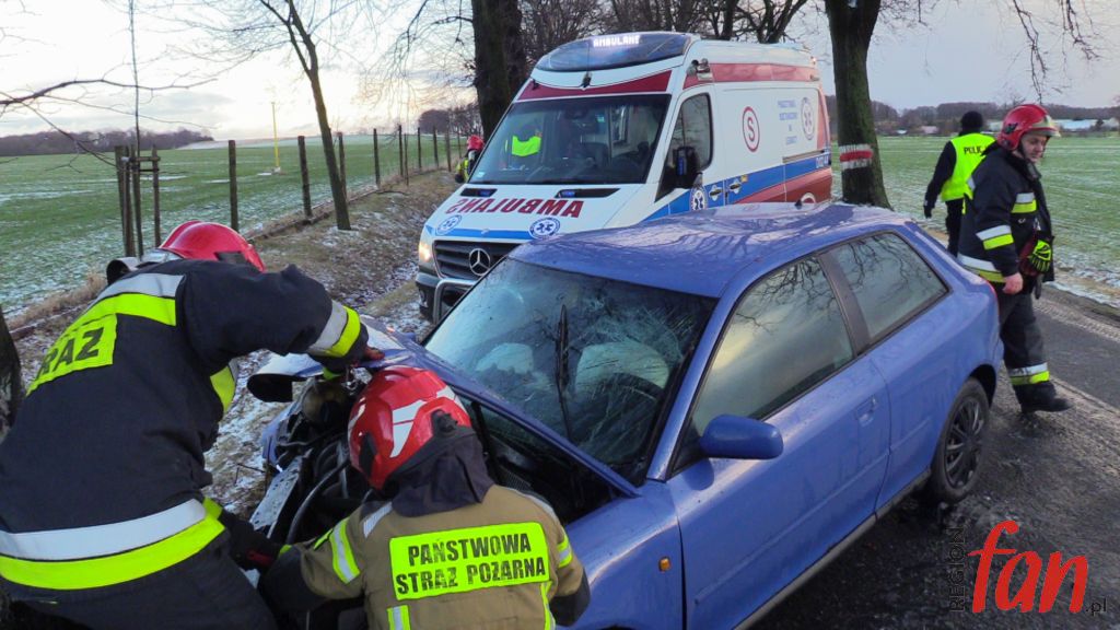 Choć w mieście zimy jeszcze nie widać to już kilka kilometrów za Jaworem w kierunku Świerzawy od rana pada marznący śnieg z deszczem. O trudnych warunkach na drodze przekonał się młody kierowca audi, który na drodze wojewódzkiej nr 365 wpadł w poślizg i uderzył w drzewo. Do zdarzenia doszło kilka minut po godz. 15 na wysokości miejscowości Myślinów.
