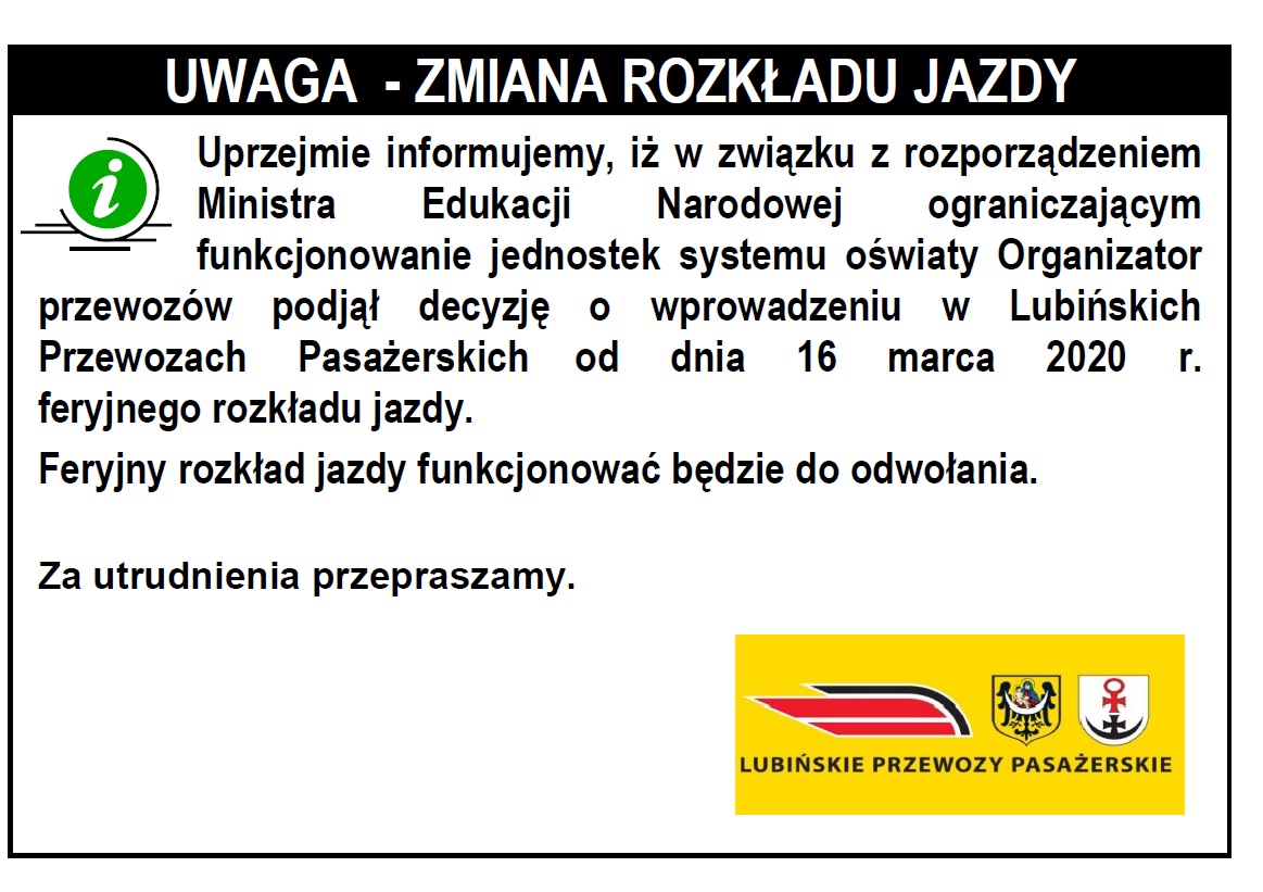 Ponadto od poniedziałku, 16 marca, ograniczona zostanie liczba kursów. Autobusy Lubińskich Przewozów Pasażerskich będą jeździć według feryjnego rozkładu jazdy, czyli po prostu rzadziej. Wpływ na to ma nie tylko chęć ochrony pasażerów i kierowców, ale również czasowe zamknięcie szkół i przedszkoli oraz przejście wielu firm na pracę zdalną – co oznacza, że autobusami zapewne będzie jeździć mniej osób. Czy faktycznie tak będzie, dopiero się przekonamy. Lubiński PKS obserwuje sytuację, by reagować na bieżąco.