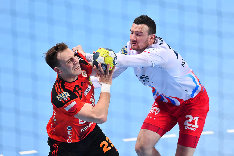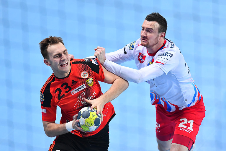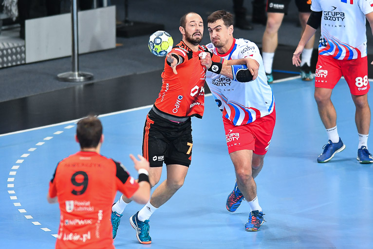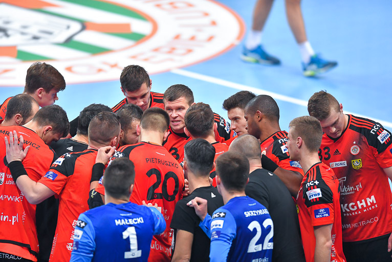 Druga połowa zaczęła się dla gospodarzy obiecująco. Miedziowi rzucali nawet w osłabieniu i sześć minut po zmianie stron wrócili do gry. Przy stanie 16:19 o czas dla puławian poprosił Daniel Waszkiewicz. W 40. minucie czerwoną kartę z gradacji kar ujrzał Paweł Grzelak, a chwilę później Łukasz Kużdeba rzucił dwudziestą bramkę dla swojej drużyny, rywale w tym momencie mieli o trzy trafienia więcej. W ostatnim kwadransie znów uwidoczniła się przewaga brązowych medalistów z ubiegłego sezonu, kolejne bramki rzucał Nikola Prce, dzięki czemu jego drużyna spokojnie kontrowała przebieg boiskowych wydarzeń, wygrywając 36:32.