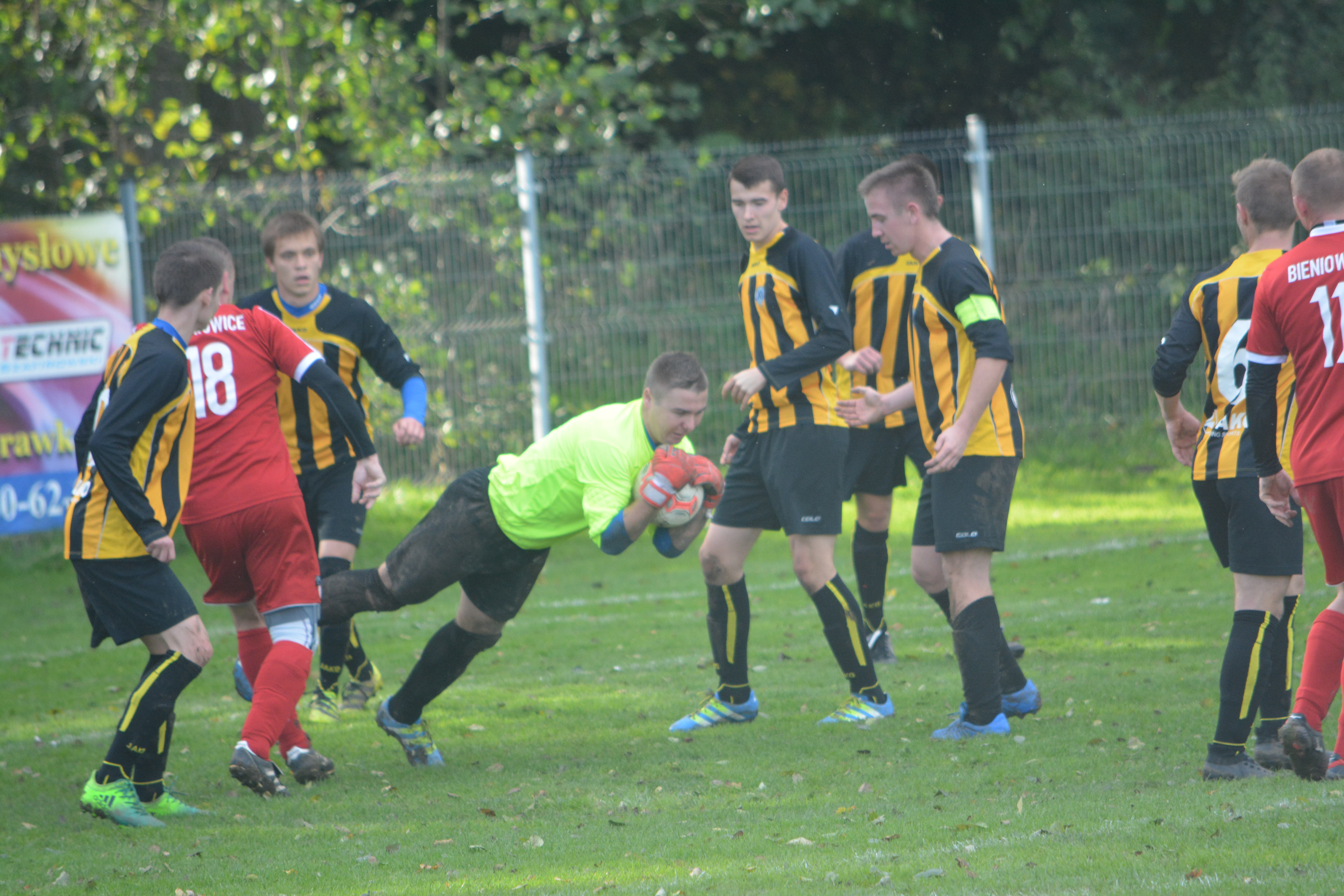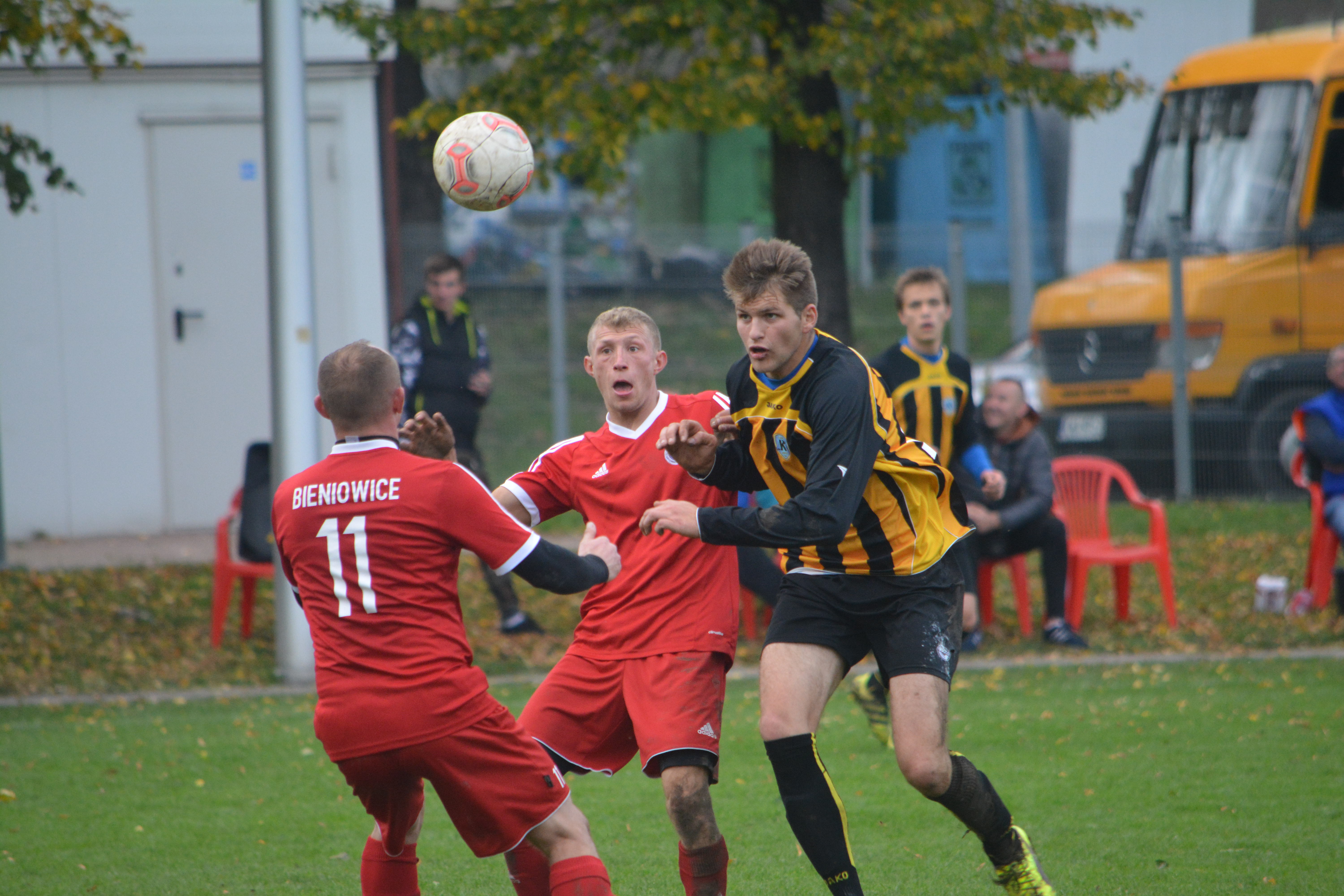Kuźnia Jawor podtrzymała dobrą passę w starciach z Kaczawą Bieniowice. Jaworzanie pokonali dziś zasłużenie bieniowiczan 5:2, a wszystkie gole dla naszej drużyny strzelił Marcin Bagiński. W Bieniowicach w barwach jaworskiej Kuźni mieliśmy dziś debiut oraz powrót po ciężkiej kontuzji. Premierowy występ zaliczył Ukrainiec Yurii Shkvarlo, a w niebiesko-żółto-czarnych barwach po urazie ponownie zagrał Krystian Pietruszka.