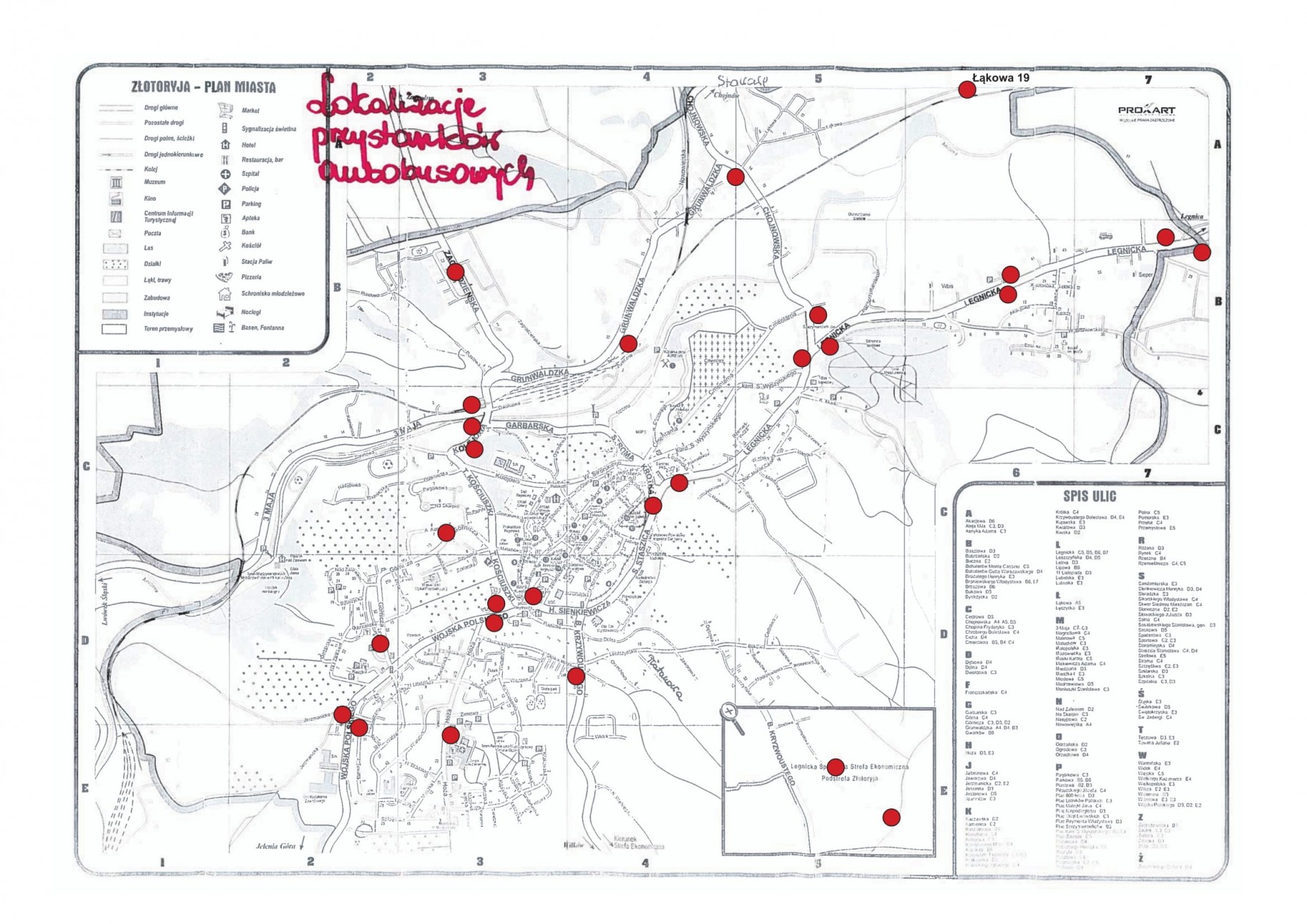 Trasa autobusu obejmie praktycznie obszar całego miasta. Wyjątkiem będzie ścisłe centrum wraz z Rynkiem, do którego pojazd nie wjedzie ze względu na swoje gabaryty. Przewidzianych zostało kilka małych pętli, które zawsze będą się zaczynały i kończyły pod Złotoryjskim Ośrodkiem Kultury i Rekreacji. Autobus pojedzie na os. Kopacz (ul. Staszica i Legnicką, tak samo wróci) i do szpitala (ul. Wojska Polskiego i Lubelską, powrót Hożą). Nie ominie również ul. Grunwaldzkiej (kurs przez Kopacz na ul. Łąkową, stamtąd powrót Grunwaldzką i Kolejową, a następnie Górniczą, Wojska Polskiego, Lubelską i Hożą). To najdłuższa pętla, z czasem przejazdu ok. 50 min.