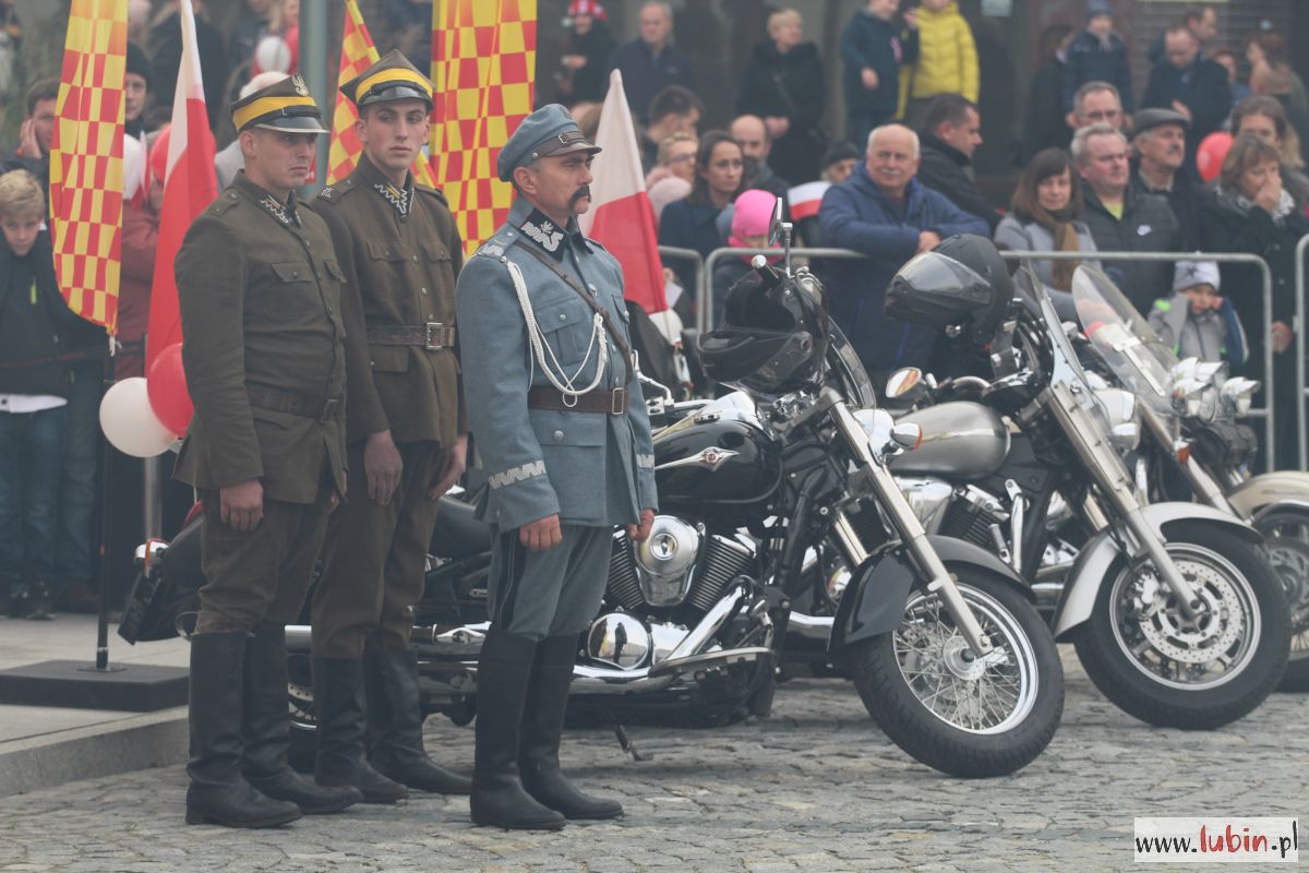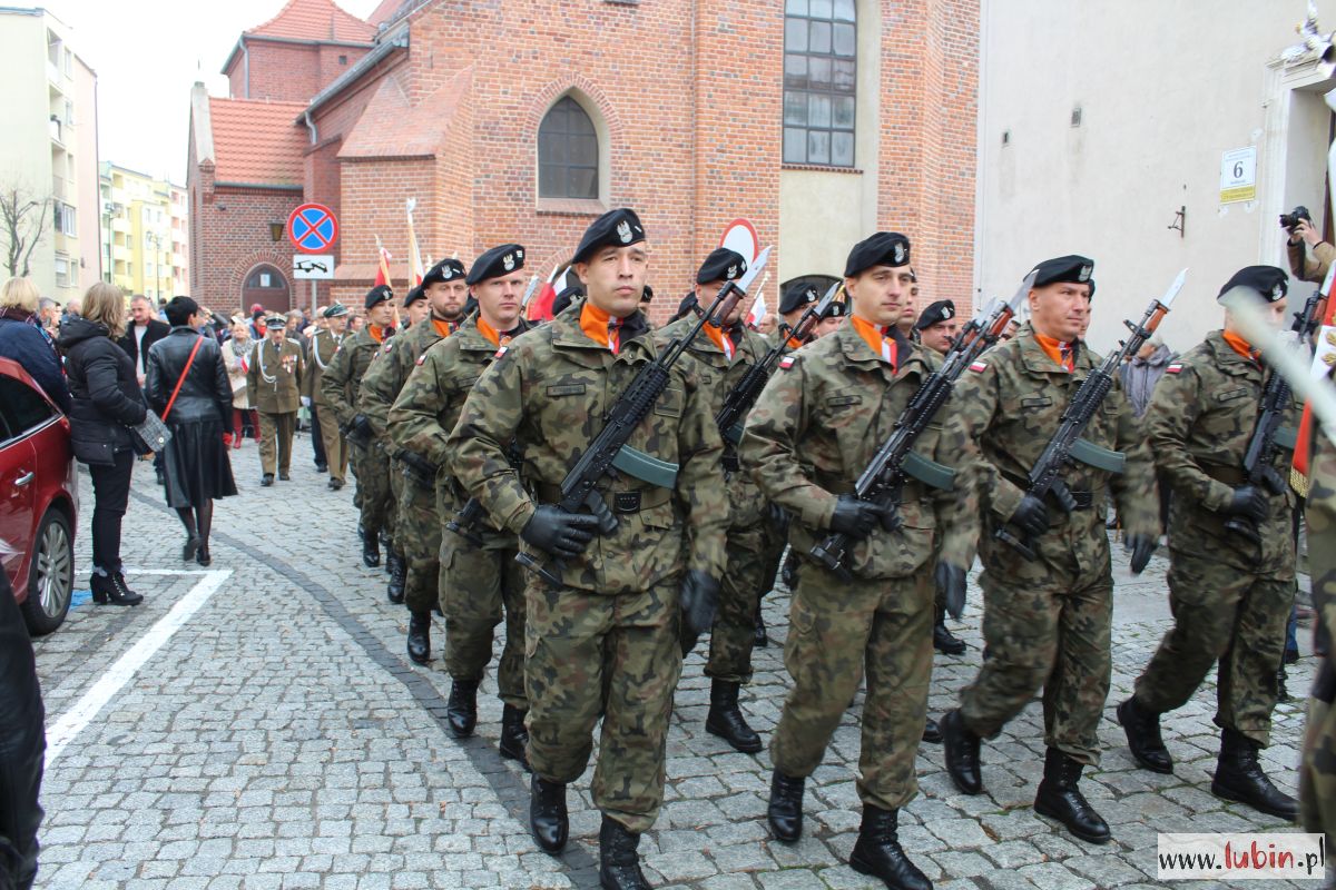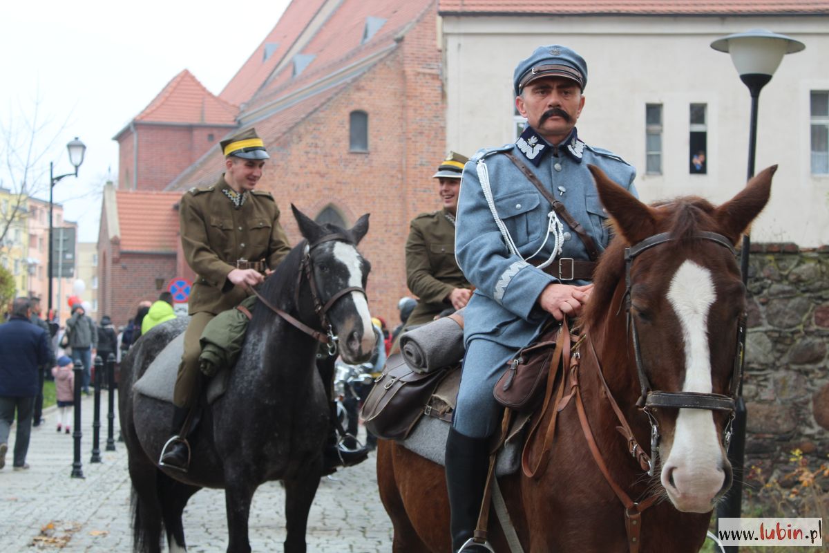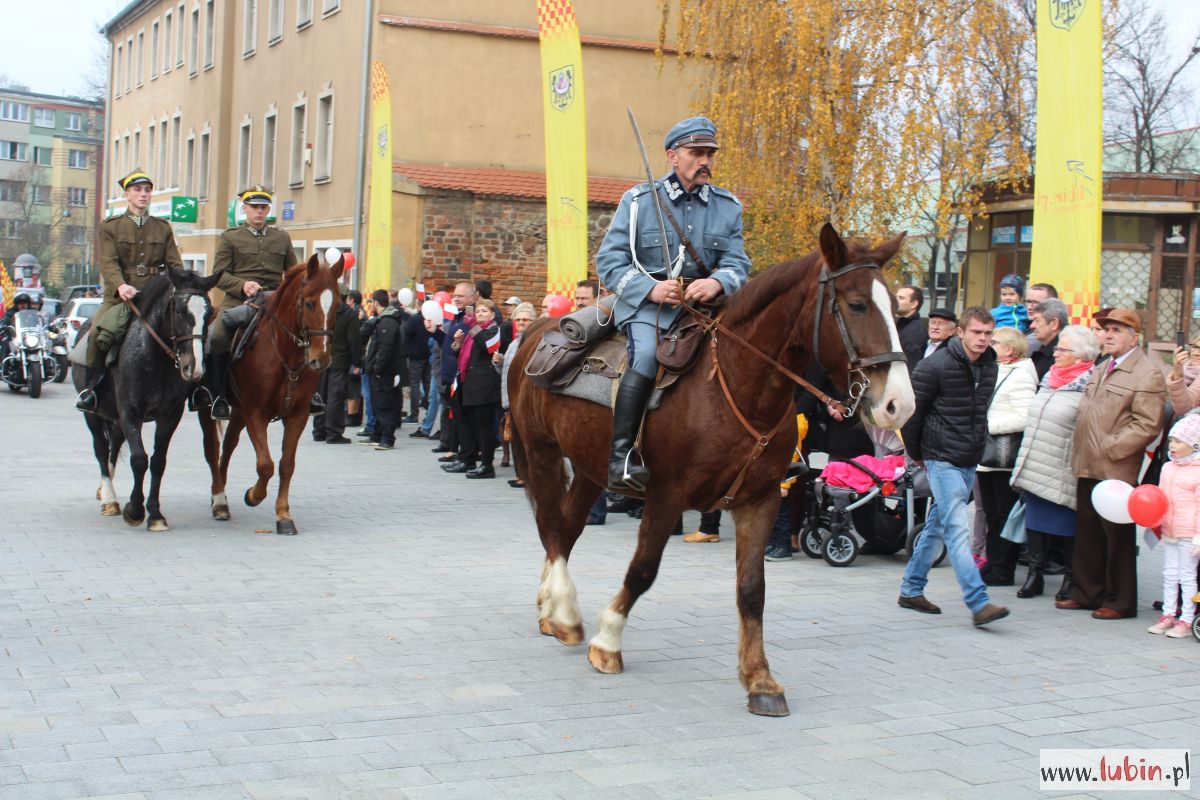 Natomiast dziś uroczystości rozpoczęły się od części oficjalnej, czyli od złożenia kwiatów pod pomnikiem marszałka Józefa Piłsudskiego. Potem odprawiono mszę w intencji ojczyzny w kościele pw. Matki Bożej Częstochowskiej i wszyscy udali się na lubiński rynek. Po raz pierwszy lubinianie mogli obejrzeć paradę z udziałem żołnierzy z Czarnej Dywizji, czyli 11. Lubuskiej Dywizji Kawalerii Pancernej. W poprzednich latach bowiem mieszkańcy szli w pochodzie za żołnierzami i orkiestrą. Tym razem, stojąc na rynku, obserwowali korowód, który otwierał marszałek Józef Piłsudski na Kasztance.