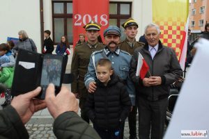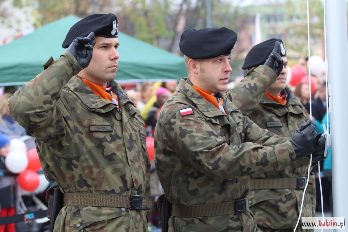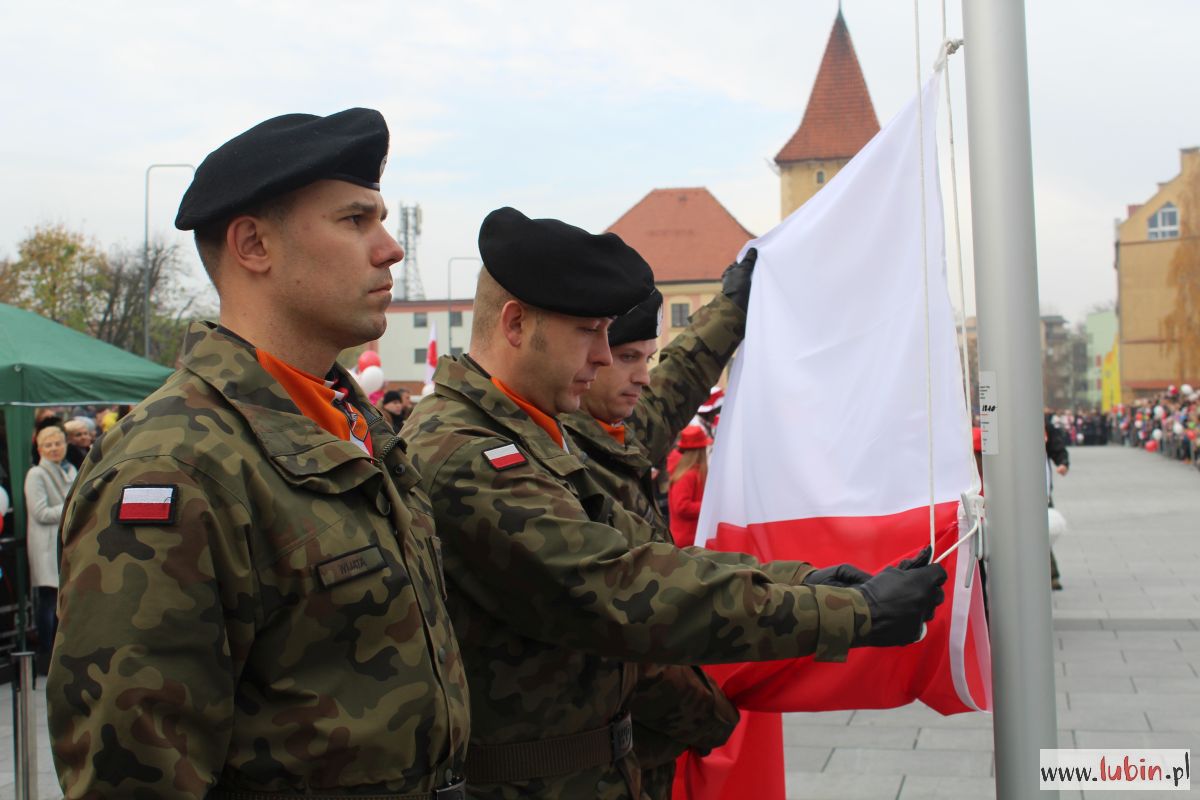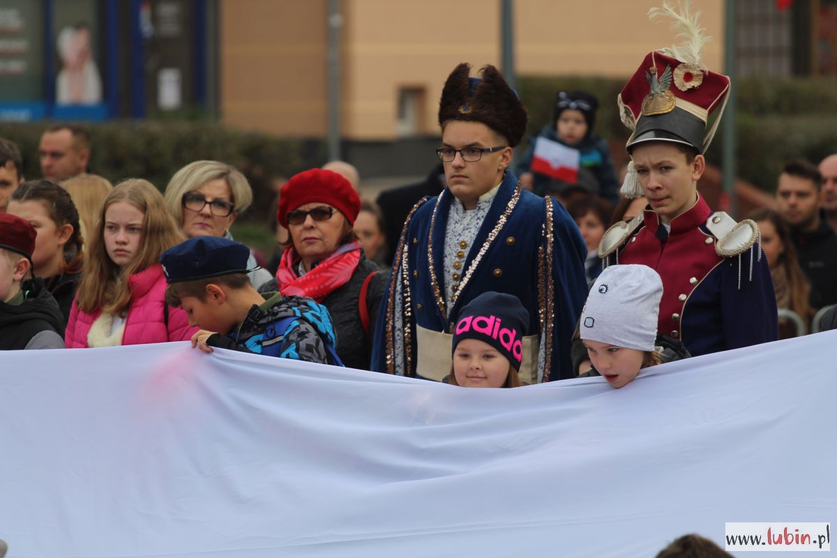 Natomiast dziś uroczystości rozpoczęły się od części oficjalnej, czyli od złożenia kwiatów pod pomnikiem marszałka Józefa Piłsudskiego. Potem odprawiono mszę w intencji ojczyzny w kościele pw. Matki Bożej Częstochowskiej i wszyscy udali się na lubiński rynek. Po raz pierwszy lubinianie mogli obejrzeć paradę z udziałem żołnierzy z Czarnej Dywizji, czyli 11. Lubuskiej Dywizji Kawalerii Pancernej. W poprzednich latach bowiem mieszkańcy szli w pochodzie za żołnierzami i orkiestrą. Tym razem, stojąc na rynku, obserwowali korowód, który otwierał marszałek Józef Piłsudski na Kasztance.