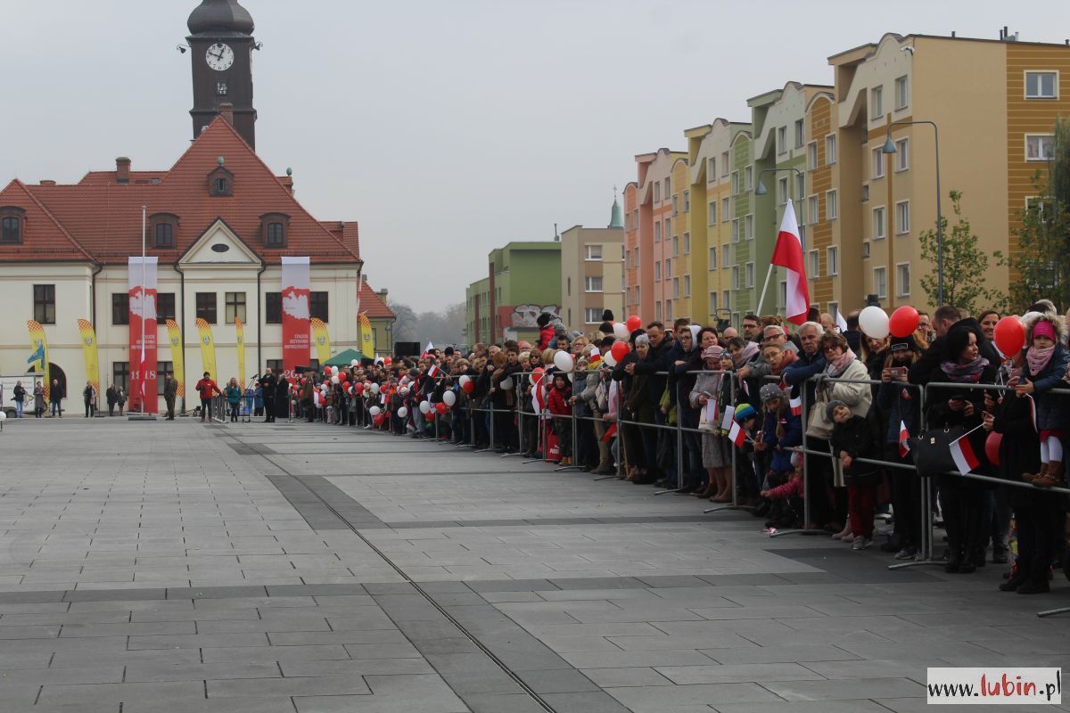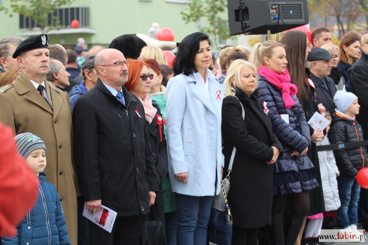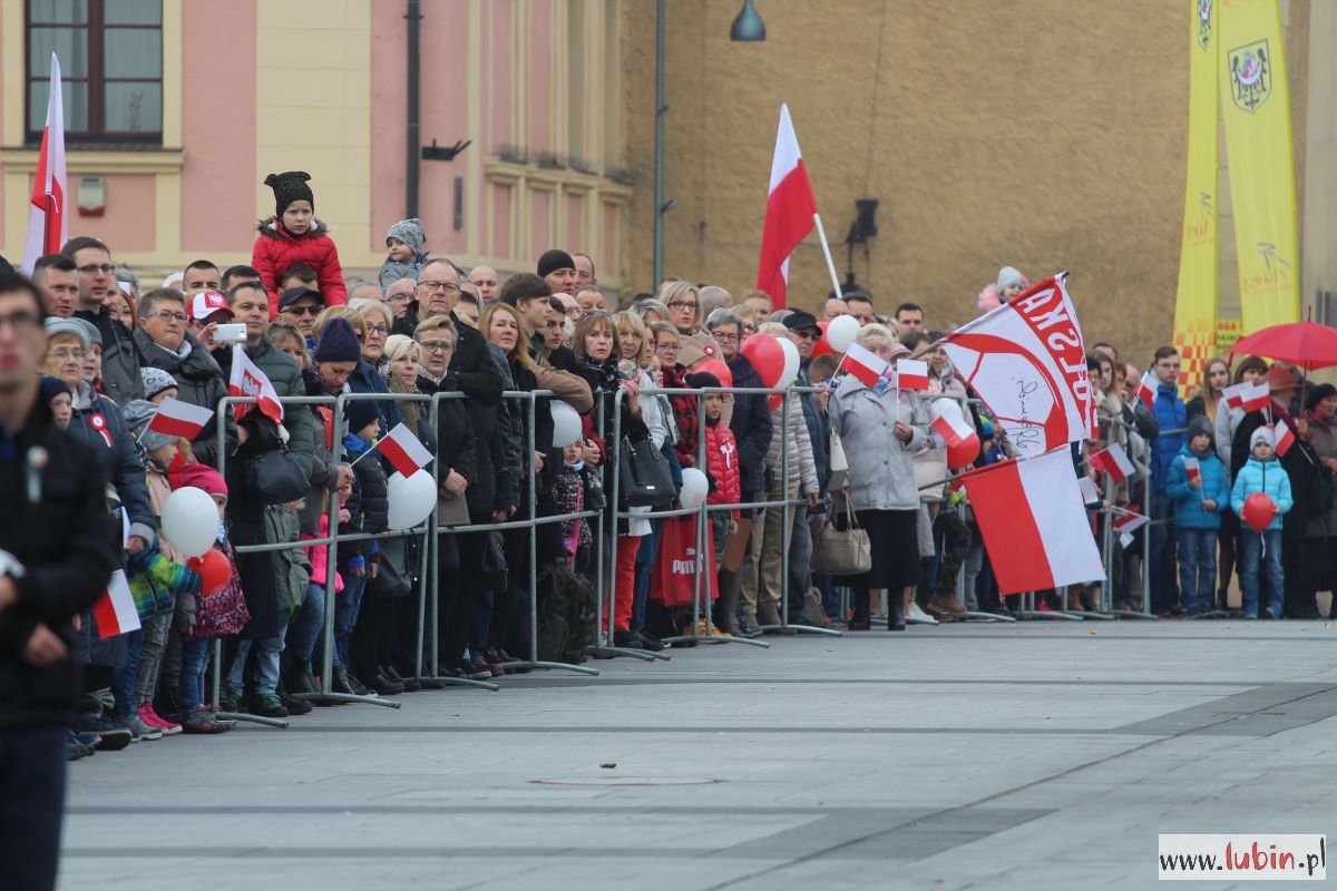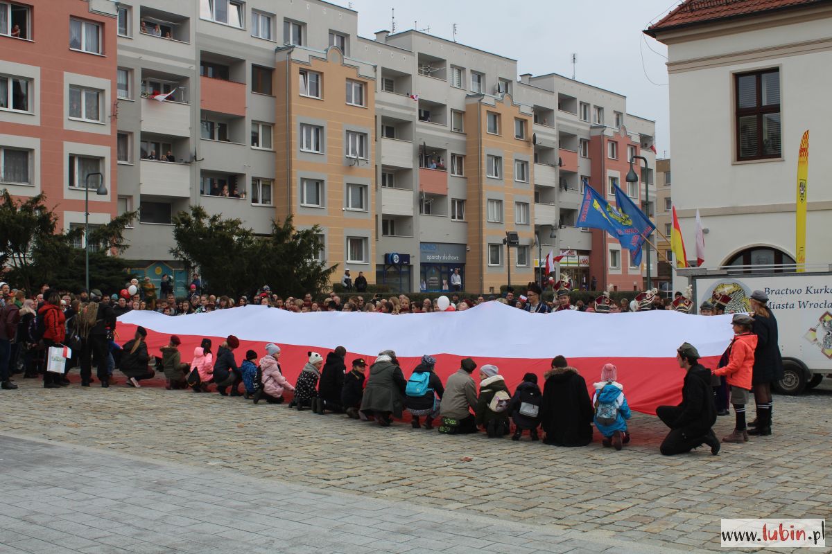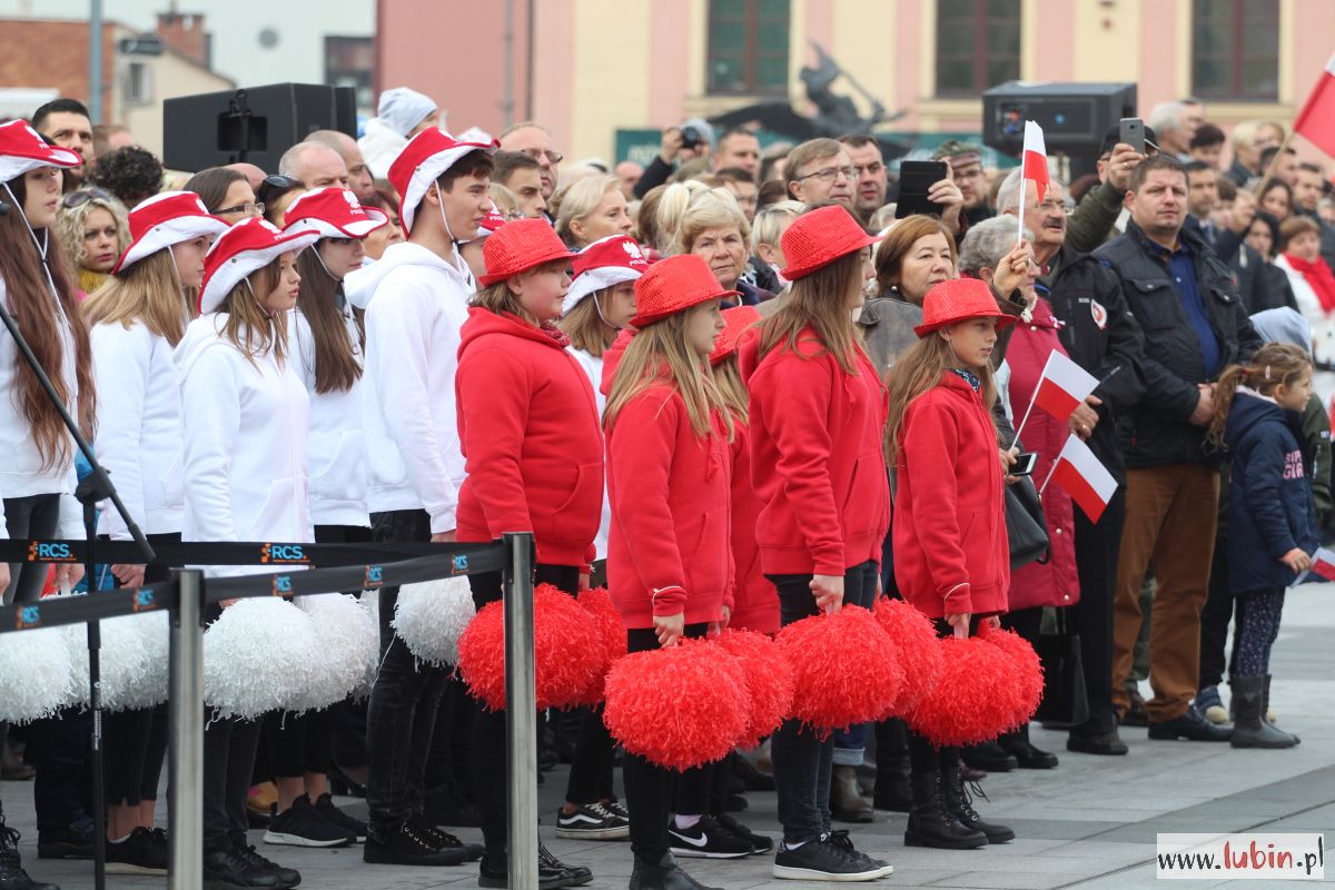 Biało-czerwono zrobiło się dziś na lubińskim rynku. Lubinianie z kotylionami i balonami w barwach narodowych oraz z flagami pojawili się tu, by wspólnie uczcić 100-lecie odzyskania przez Polskę niepodległości.