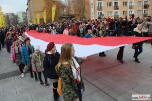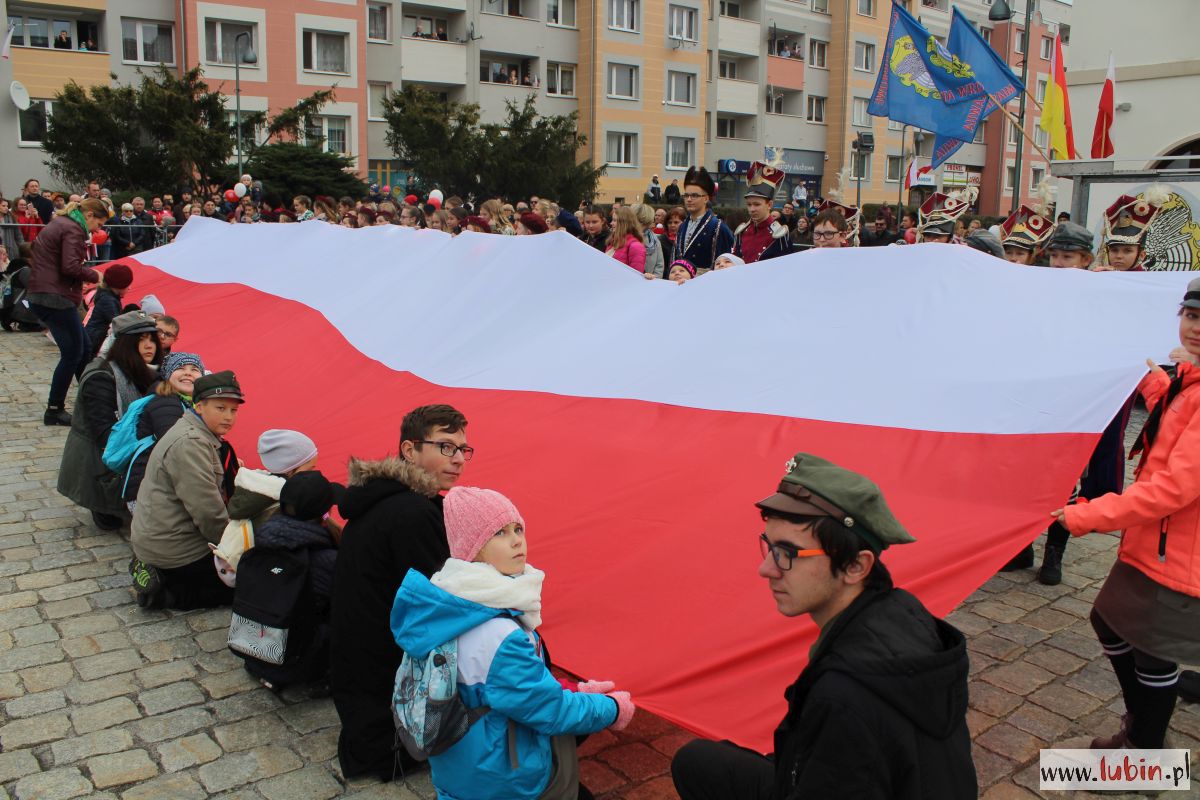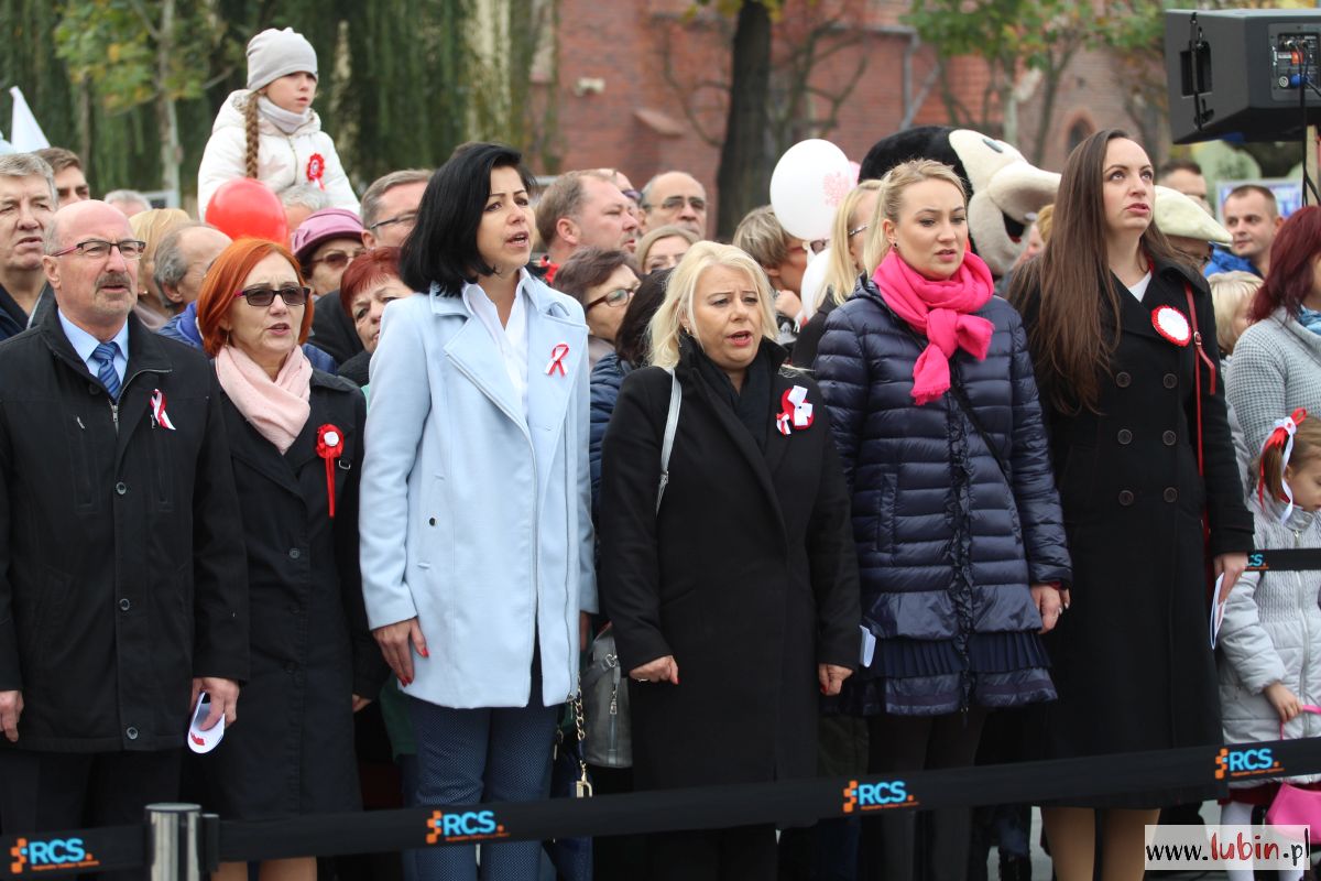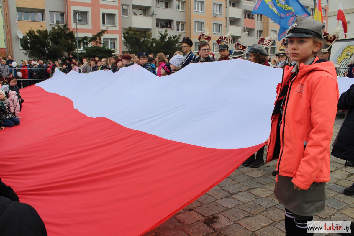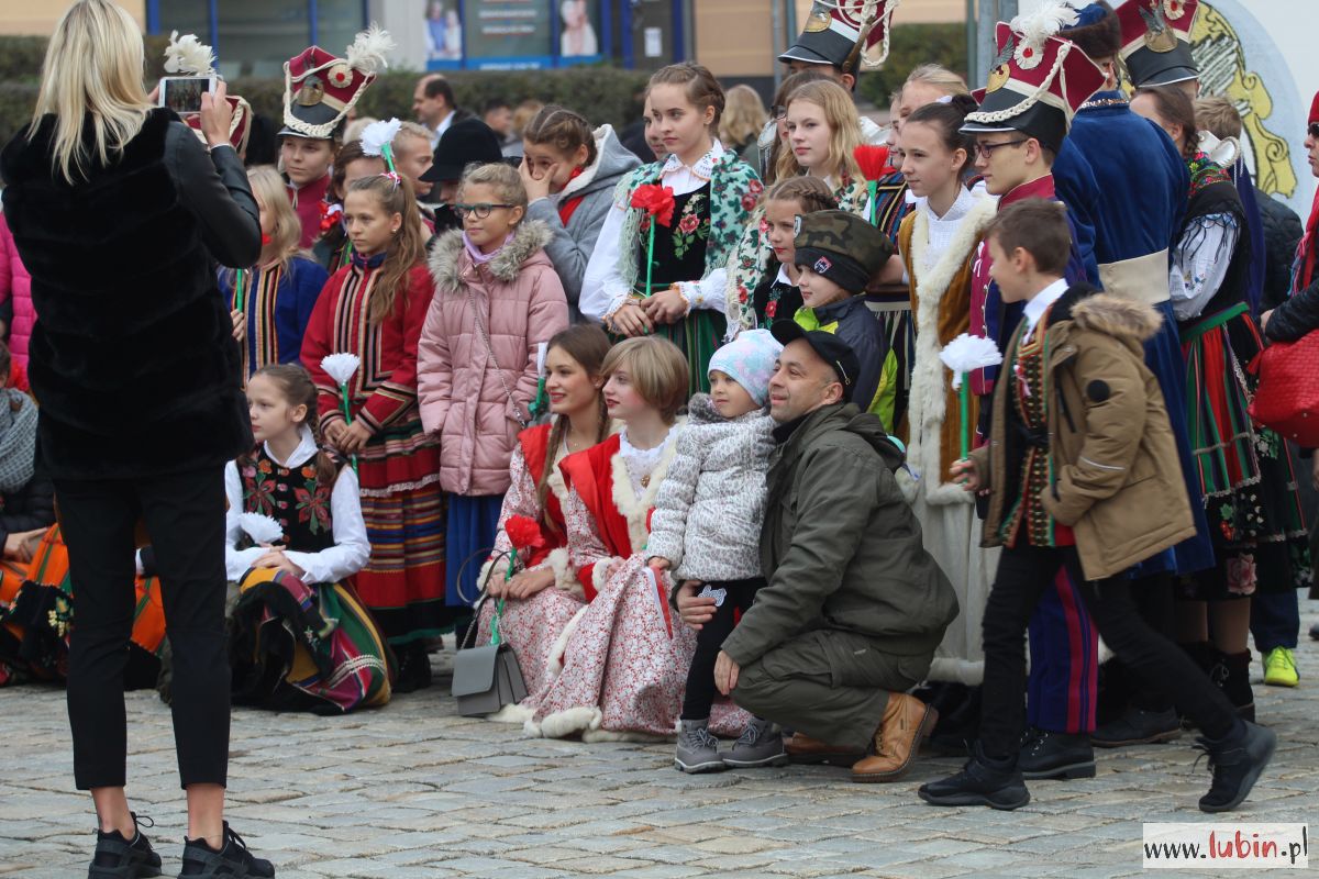 Biało-czerwono zrobiło się dziś na lubińskim rynku. Lubinianie z kotylionami i balonami w barwach narodowych oraz z flagami pojawili się tu, by wspólnie uczcić 100-lecie odzyskania przez Polskę niepodległości.