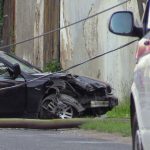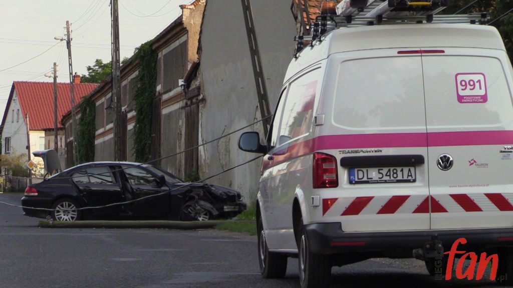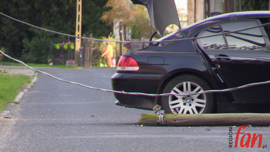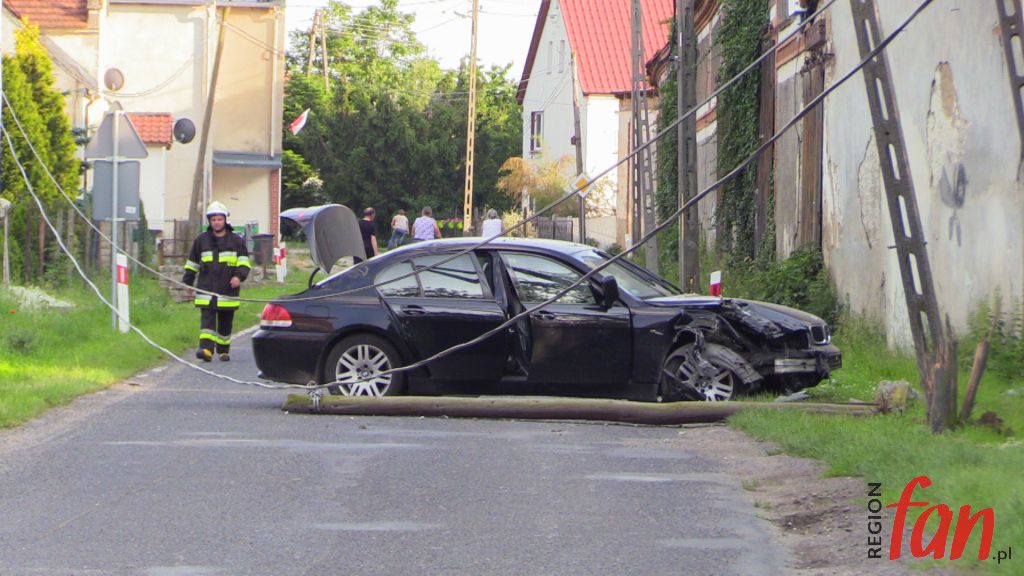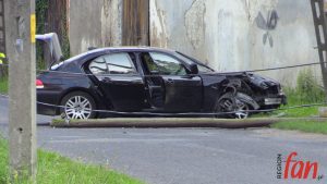 Kilka minut po godz. 18 w Warmątowicach Sienkiewiczowskich rozpędzone BMW na prostym odcinku drogi uderzyło w dwa słupy. Do zdarzenia doszło w centrum miejscowości. Słup telekomunikacyjny został złamany, natomiast energetyczny pękł i trzymał się na przewodach.