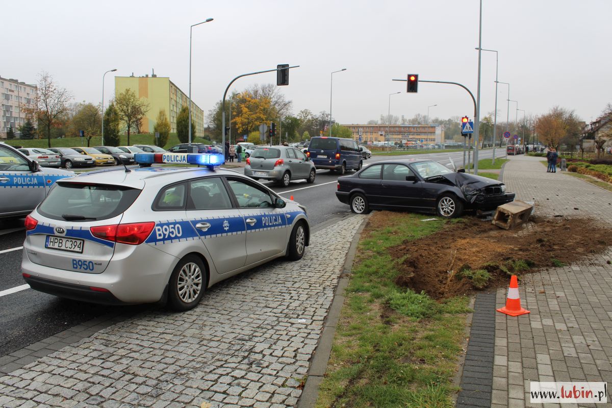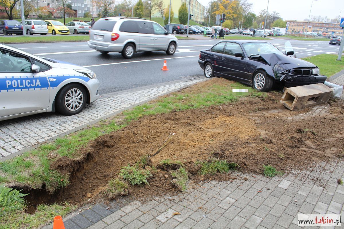BMW kierował 25-latek z Lubina. Ruszył spod świateł przy Galerii Cuprum Arena, a chwilę później próbował wyminąć samochód nauki jazdy, któremu nagle zgasł silnik. Prowadzone przez 25-latka BMW wpadło w poślizg.