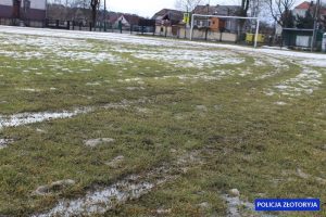 Zgłoszenie o dewastacji murawy boiska w Zagrodnie wpłynęło do złotoryjskiej komendy policji w niedzielę około godz. 12. – Z przekazanych dyżurnemu informacji wynikało, że młody mężczyzna siedzący za kierownicą samochodu osobowego wjechał na płytę główną boiska piłkarskiego i wielokrotnie jeździł po jego całej powierzchni. Rajd po rozmokłym boisku spowodował, że powstały na nim liczne ślady i koleiny – relacjonuje starszy sierżant Dominika Kwakszys, oficer prasowy Komendy Powiatowej Policji w Złotoryi.