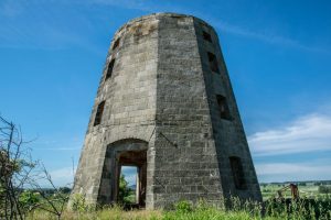 Spod wiatraka widać Wał Okmiański, Grodziec, Mniszą Górę, a w oddali piękną panoramę Karkonoszy. Teraz pozostały już z niego ruiny. Zachowały się jedynie ściany z piaskowca i cegieł oraz kilka drewnianych belek. Nie ma już tak zwanej „czapki”, czyli obrotowej kopuły wraz ze skrzydłami i całego mechanizmu.