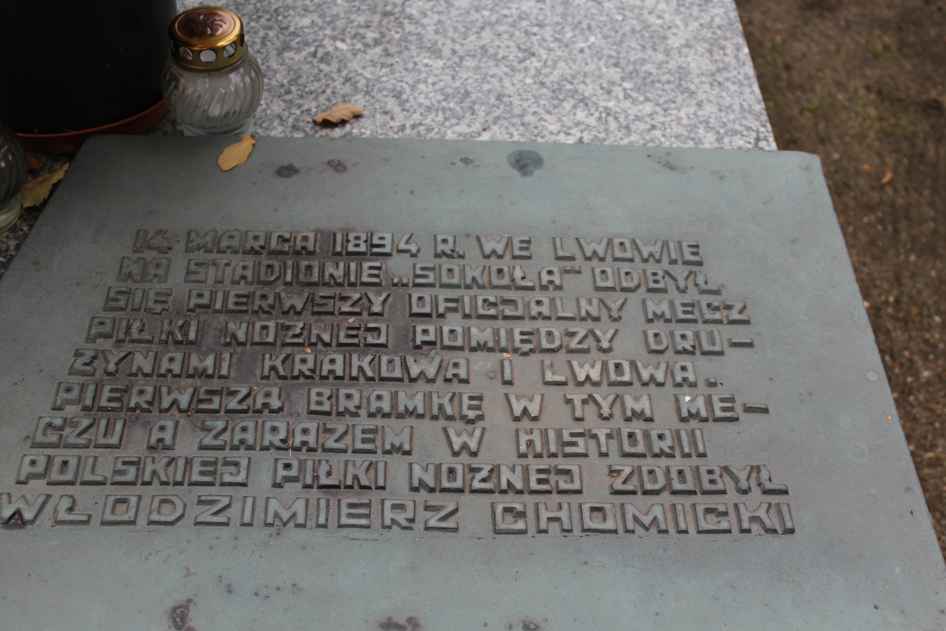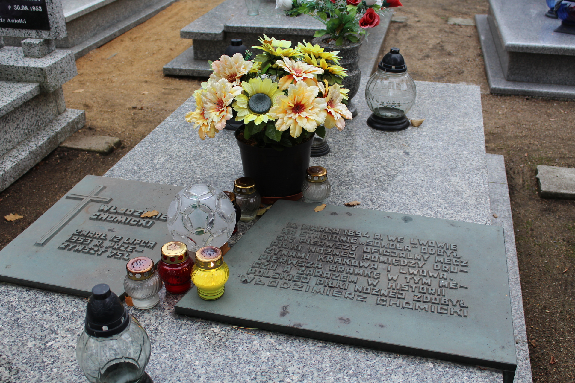 Na grobie Włodzimierza Chomickiego, który pochowany został na chocianowskim cmentarzu, znicze palą się nie tylko 1 listopada. Żył skromnie, ale – jak się okazało – zostawił swój ślad w historii. „14 marca 1894 roku, we Lwowie na stadionie „Sokoła”, odbył się pierwszy mecz piłki nożnej pomiędzy drużynami Krakowa i Lwowa. Pierwszą bramkę w tym meczu, a zarazem w historii polskiej piłki nożnej, zdobył Włodzimierz Chomicki” – taki napis znajduje się na nagrobnej tablicy (choć, według różnych źródeł, wydarzenie to miało miejsce 14 lipca).