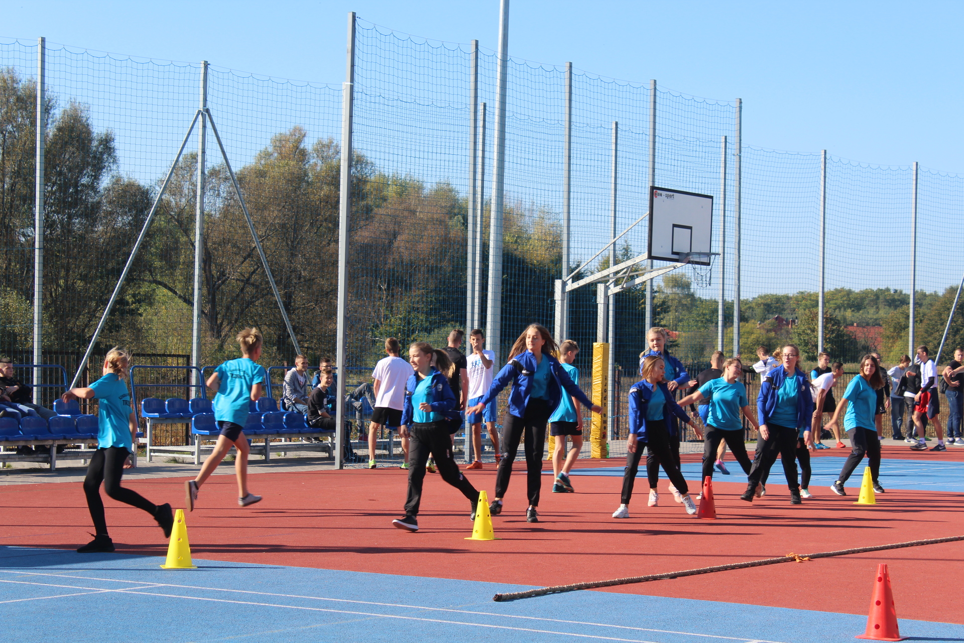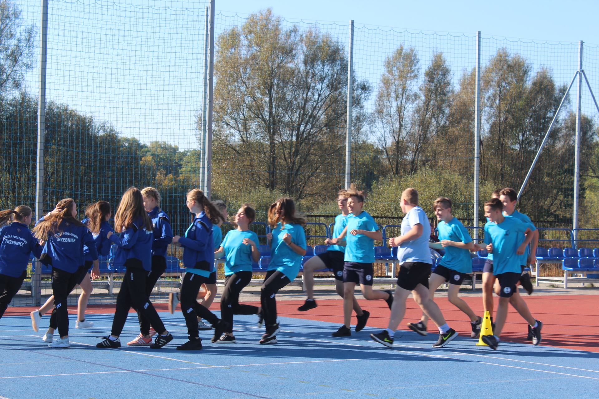 Po efektownych pokazach, a zanim rozpoczęła się rywalizacja sportowa, m.in. w biegu przełajowym na dystansie 1000 m, pchnięciu kulą, skoku w dal i przeciąganiu liny, młodzi sportowcy mieli czas na rozgrzewkę.