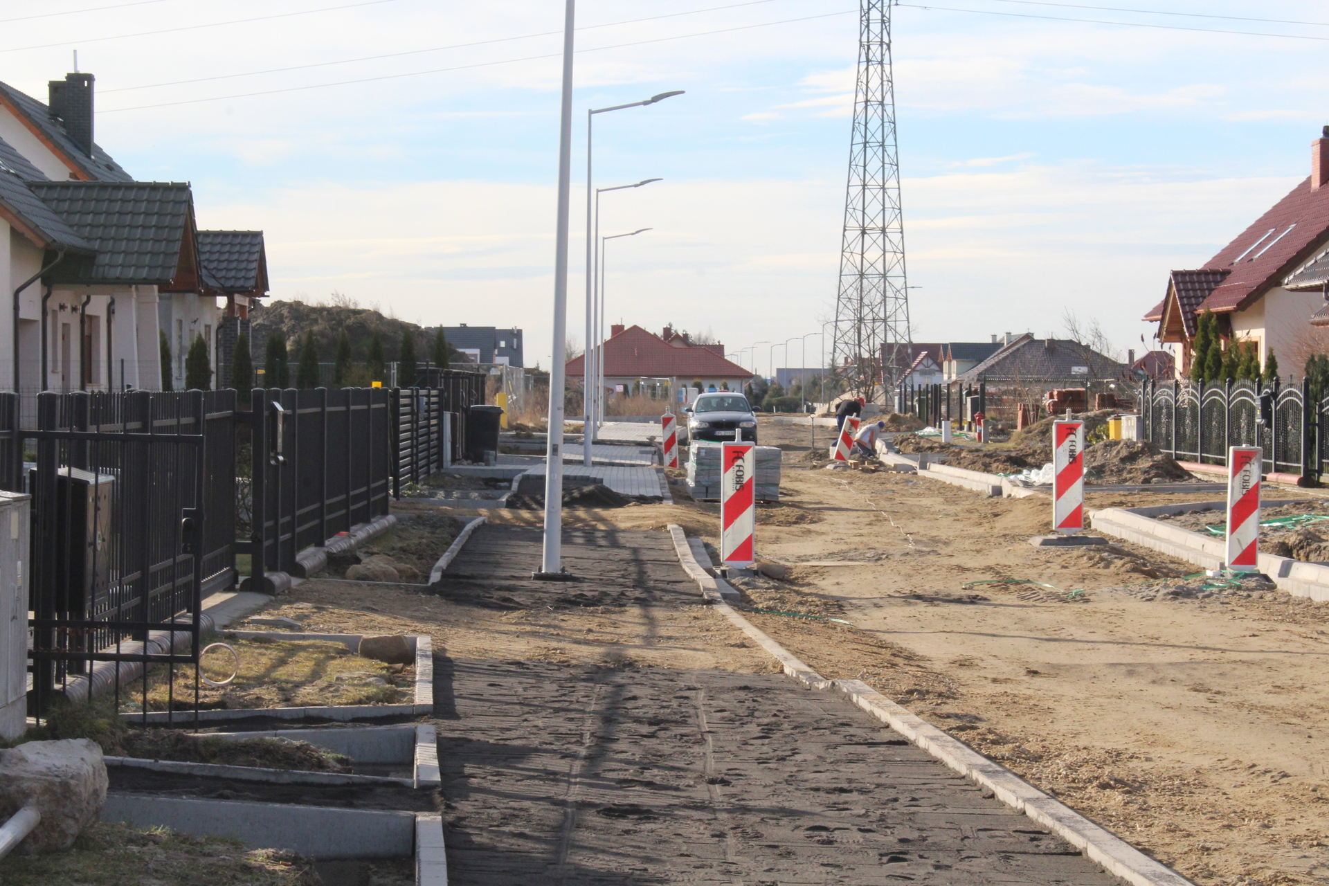 Od pracowników, których spotkaliśmy na miejscu dowiedzieliśmy się, że oni swoje prace w tym rejonie wykonują zgodnie z projektem, tj. m.in. nawierzchnię dróg i chodników. Teraz budowa tego przy ul. Gruszkowej jest wstrzymana.