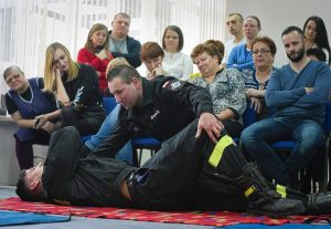Szkolenie pod okiem strażaków to kolejny etap cyklu „Każdy może udzielić pierwszej pomocy. Ty również!”, dofinansowanego przez Fundusz Inicjatyw Obywatelskich. Na spotkanie ratownicy zabrali ze sobą fantomy, dzięki którym mogli szczegółowo omówić procedury przyjęte w każdym z przypadków udzielania pierwszej pomocy: zarówno osobom dorosłym, jak i dzieciom czy niemowlakom.