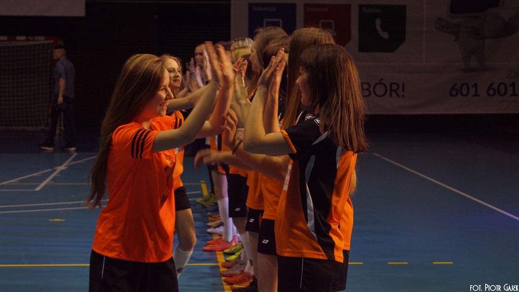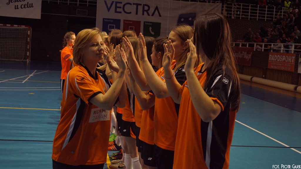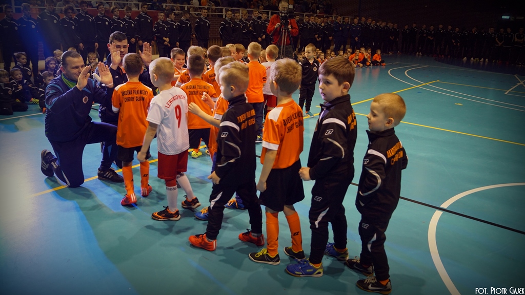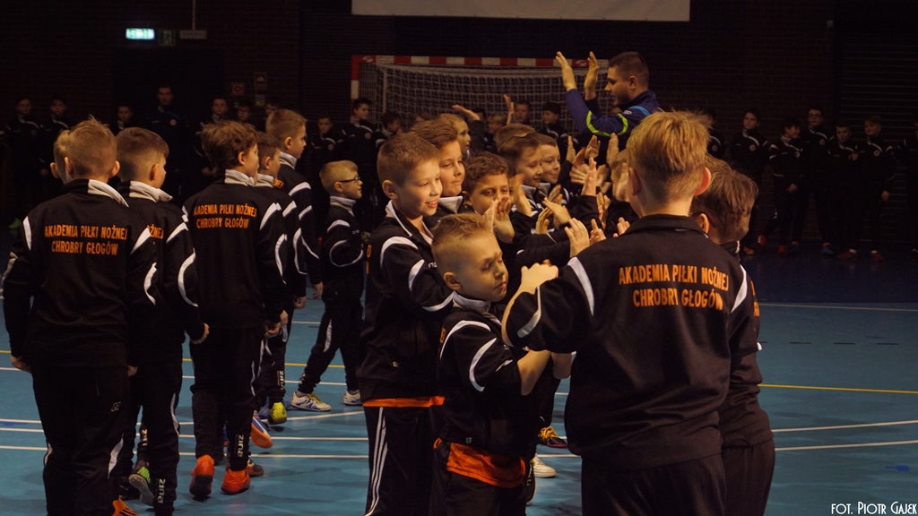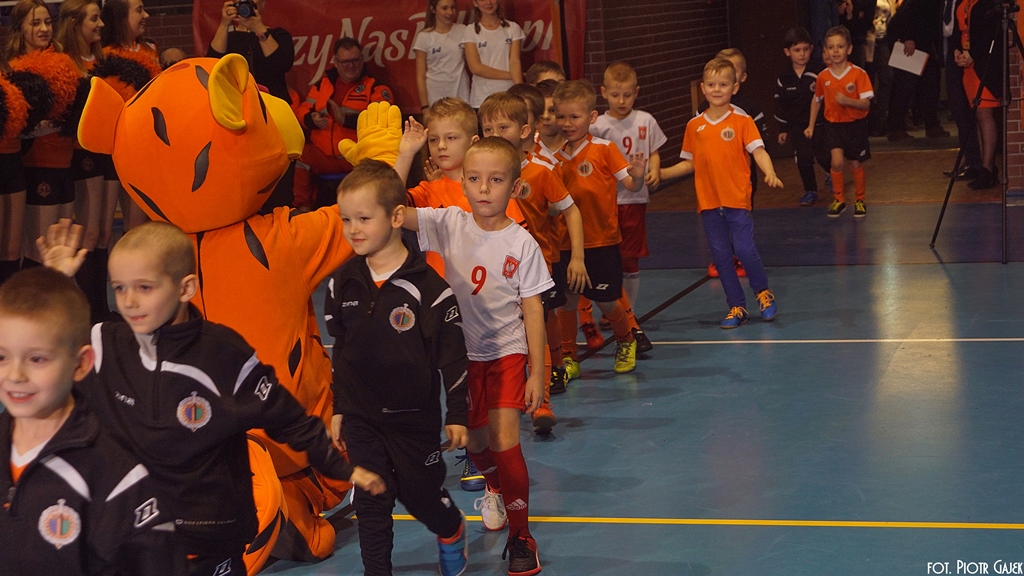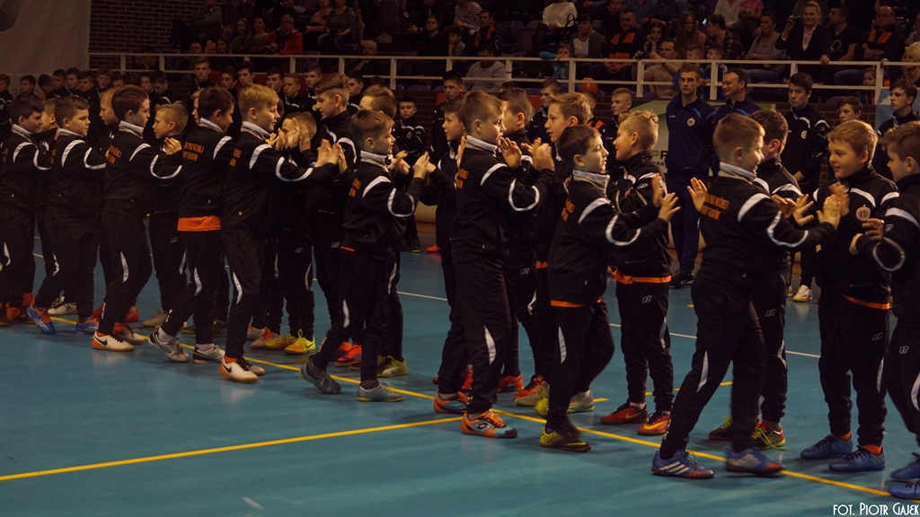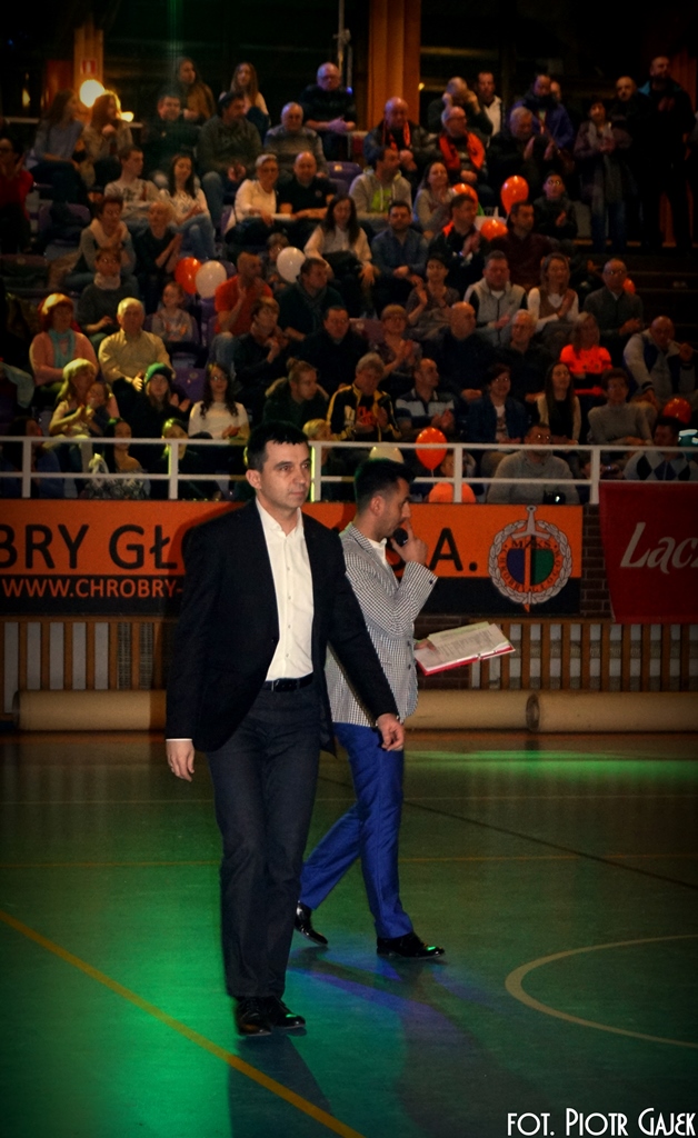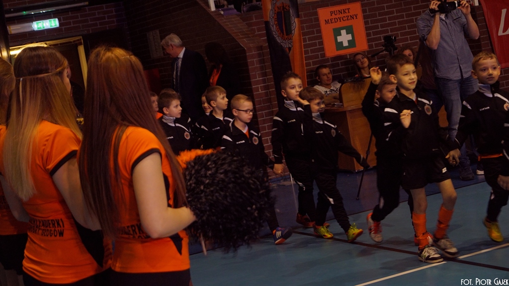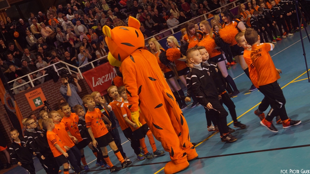 To kolejny rekord, jeśli chodzi o liczbę osób wchodzących w skład drużyn. Młodzi i starsi, chłopcy i dziewczęta – każdy sportowiec na halę wbiegał przy burzy braw i okrzykach publiczności. Nowością był pokazowy mecz juniorów młodszych w kulach śmiechu. Całość ubarwiły występy wokalne Aleksandry Mioduszewskiej i Kai Urban ze Studia Talentów i zjawiskowy taniec Cheerleaderek Chrobrego. Najdłuższe i najbardziej efektowne było przedstawienie zawodników i sztabu szkoleniowego pierwszego zespołu. Pierwszoligowcy na boisku przed własną publicznością zaprezentują się już na nadchodzącą sobotę, 4 marca.