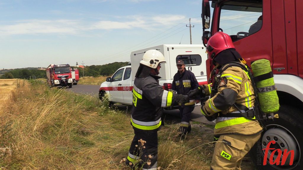 Na szczęście kombajn gospodarza z Krajewa był doskonale wyposażony. Oprócz obowiązkowej gaśnicy miał profesjonalny agregat gaśniczy i to właśnie ten sprzęt sprawił, że udało się uniknąć ogromnych strat. Obecni na polu gospodarze wezwali na pomoc strażaków, którzy schłodzili wodą rozgrzane elementy młocarni. Prace żniwne trzeba było przerwać, a strażacy asekurowali przejazd kombajnu do miejsca serwisowania. Pierwsi na miejscu zdarzenia byli druhowie z OSP Męcinka, chwilę później dojechały do nich dwa zastępy z JRG Jawor.