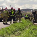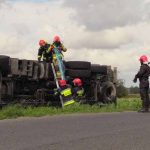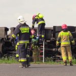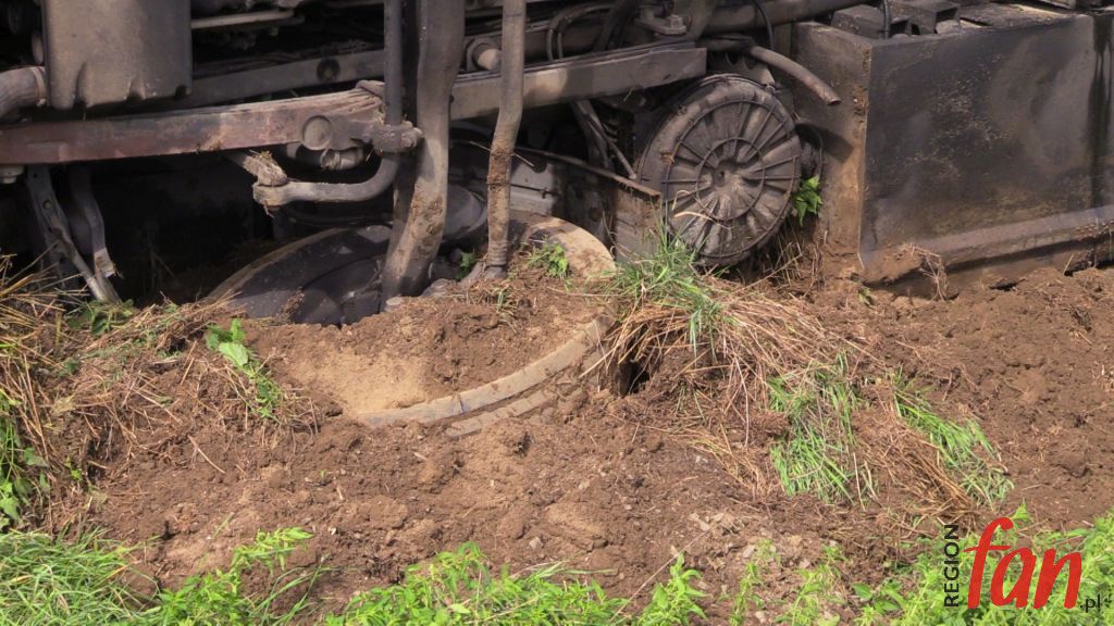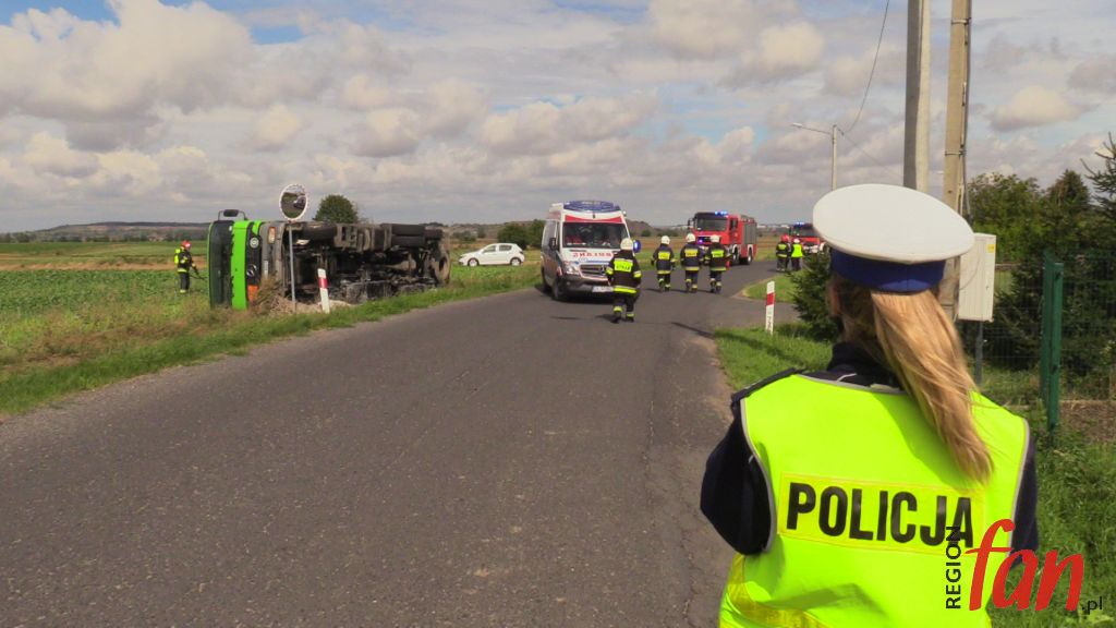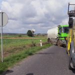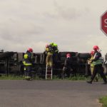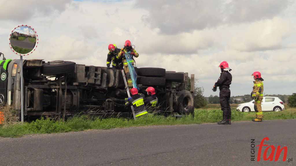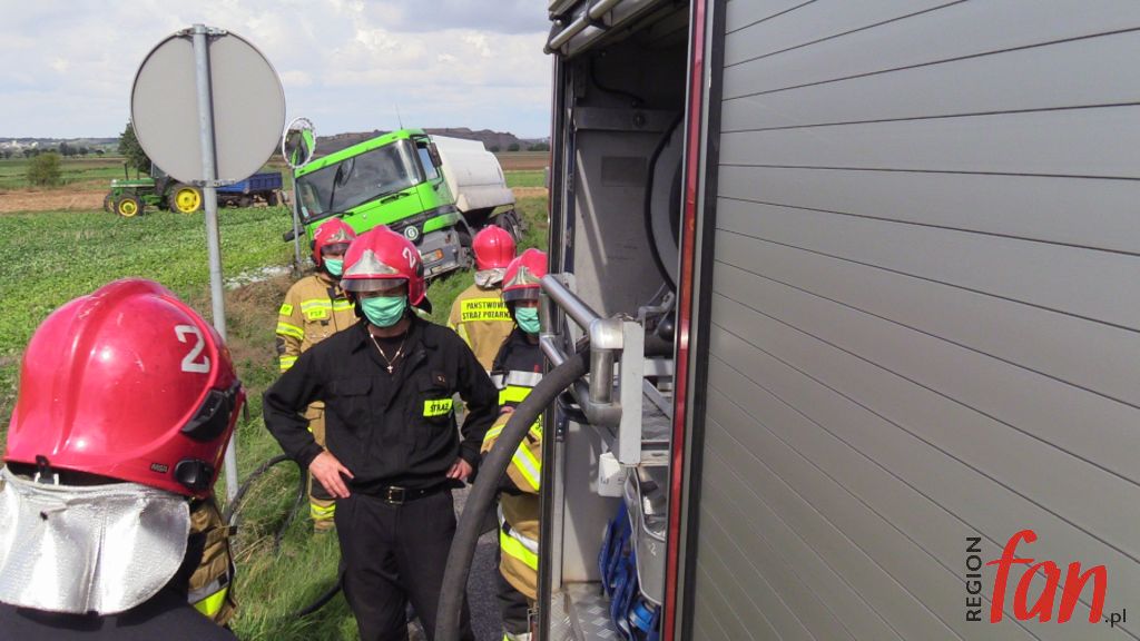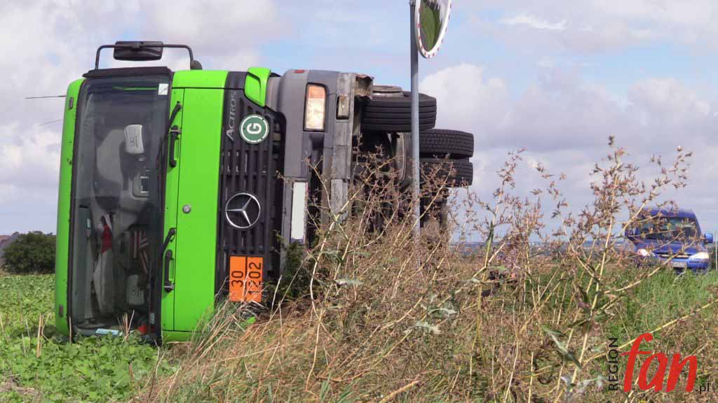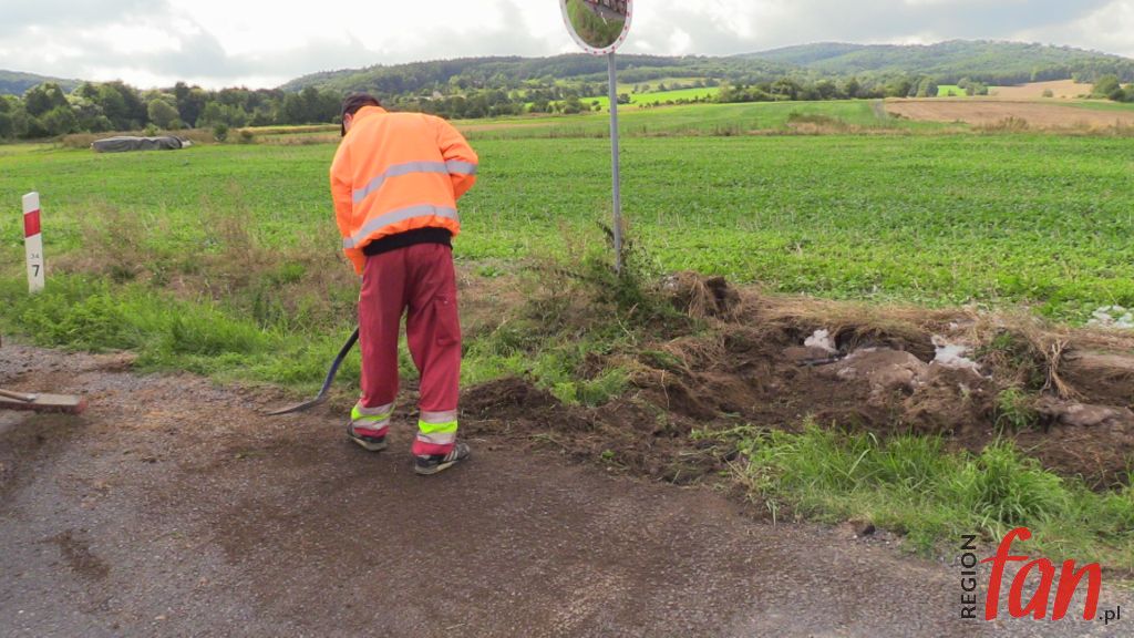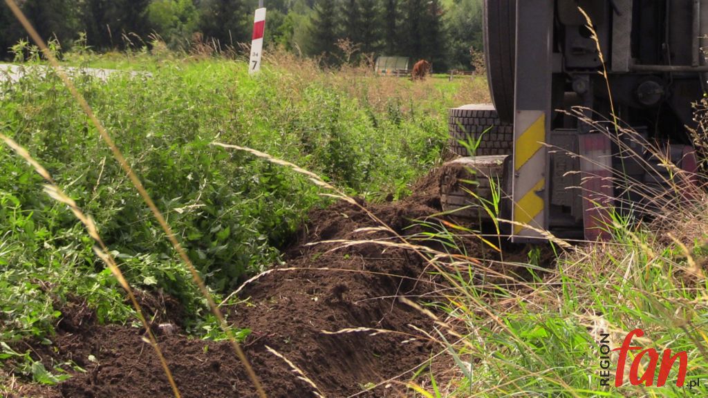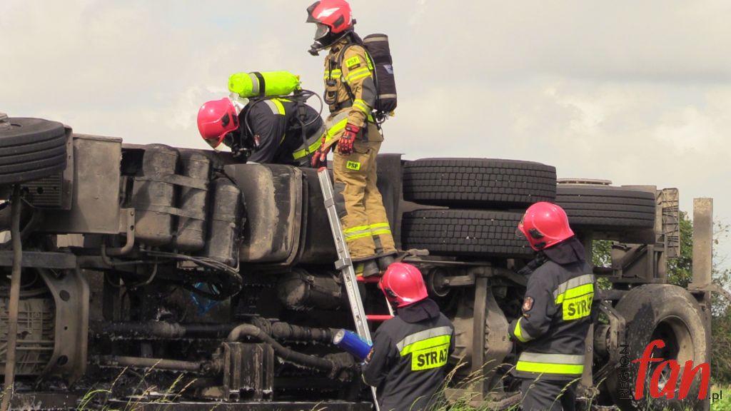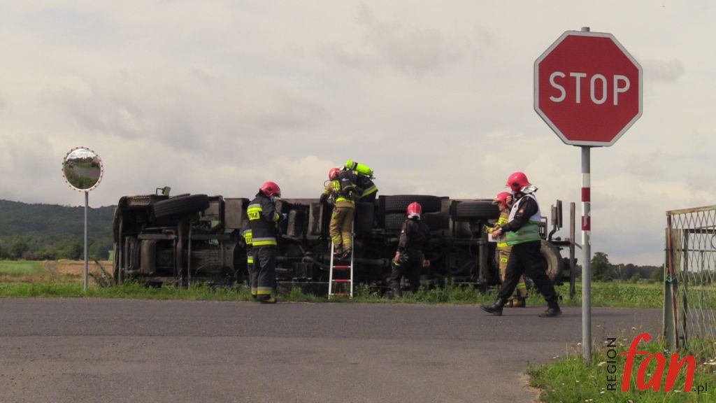Do zdarzenia doszło po godz. 13. Zadysponowano służby ratownicze, medyczne i policję. Kierujący ciężarowym mercedesem nie potrzebował pomocy ZRM. Z uwagi na zagrożenie wyciekiem paliwa na miejsce wezwano też specjalistyczne służby chemiczne z Wałbrzycha. Strażacy zabezpieczyli drobny przeciek ze zbiornika paliwa mercedesa. Po szczegółowych oględzinach cysterny ciężkim sprzętem podjęto próby postawienia składu na koła. Akcję udało się przeprowadzić sprawnie i szybko. Droga była zablokowana w obu kierunkach na 90 minut. Właściciel firmy z Bolesławca wysłał na miejsce zastępczą cysternę, do której przepompowano 6 tys. l oleju napędowego. Obecni na miejscu funkcjonariusze ustalili, że 60-letni kierowca nie zachował należytej ostrożności podczas jazdy, jechał zbyt blisko prawego pobocza i pojazd stoczył się do rowu na łuku drogi. Sprawcę zdarzenia ukarano mandatem karnym.