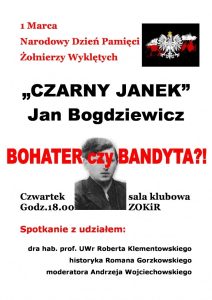 W najbliższy czwartek 1 marca w Polsce obchodzony będzie Narodowy Dzień Pamięci Żołnierzy Wyklętych. W Złotoryi to stosunkowo nowe święto postanowiono uczcić dyskusją poświęconą „Czarnemu Jankowi”, o którym powstało już wiele legend i interesujących opowieści. Historycy do tej pory spierają się o tę niewątpliwie kontrowersyjną postać.