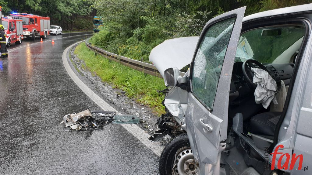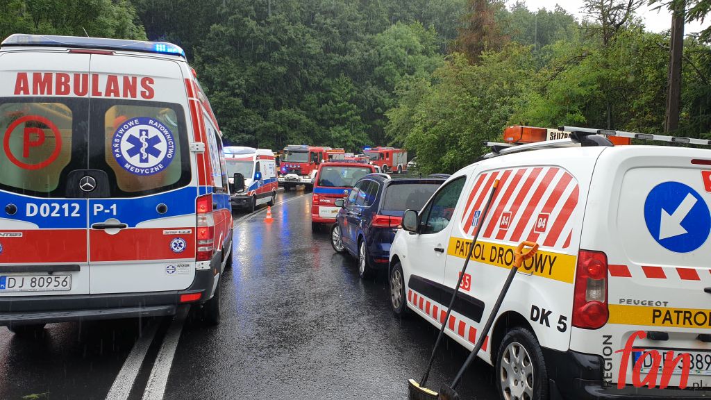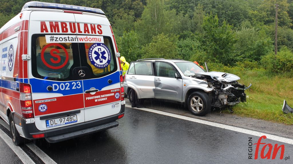 Do wypadku doszło przed godz. 14 na łuku drogi w kierunku Jeleniej Góry. Auto osobowe zderzyło się czołowo z busem. Spośród podróżujących trzy osoby zostały poważnie ranne. Pomocy przedmedycznej udzielili im ratownicy sudeckiego oddziału GOPR, którzy przypadkowo najechali na zdarzenie. Na miejsce dojechały służby ratunkowe JRG z Jawora,Sadów, Bolkowa i Radzimowic oraz dwie karetki ZRM z Jawora i Jeleniej Góry. Poszkodowani zostali przewiezieni do szpitali w Legnicy i Jeleniej Górze. Sporo pracy miały też służby drogowe. Obecni na miejscu funkcjonariusze ustalili wstępnie, że kierujący byli trzeźwi. Najprawdopodobniej jeden z kierowców stracił na łuku panowanie nad pojazdem, który wpadł w poślizg. Wiele aut – głównie ciężarowych i autobusów rejsowych utknęło w wielokilometrowym korku.