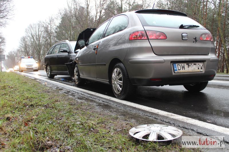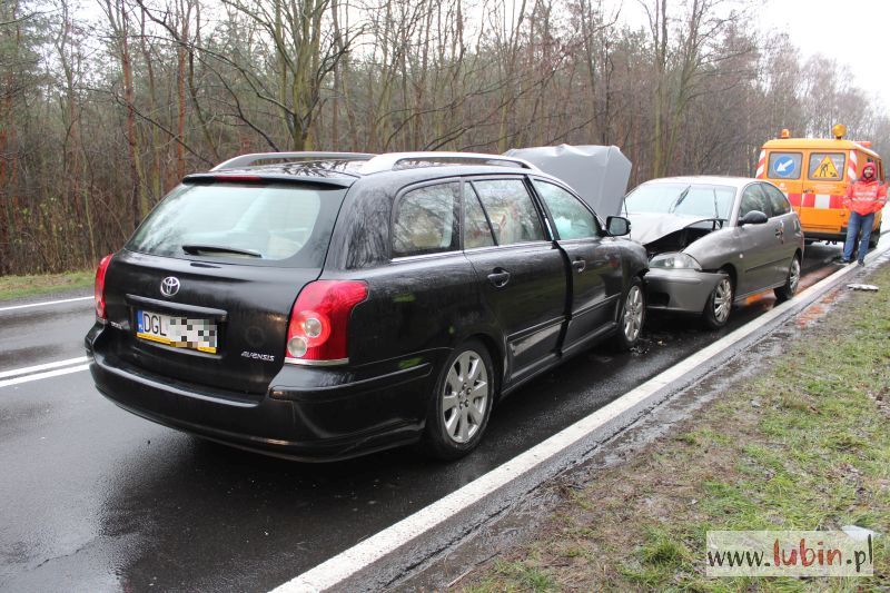 Na styku dwóch powiatów – lubińskiego i legnickiego, za miejscowością Gogołowice, na drodze krajowej 36, doszło do zderzenia dwóch pojazdów. Kierowcy obu samochodów trafili do szpitala w Lubinie.