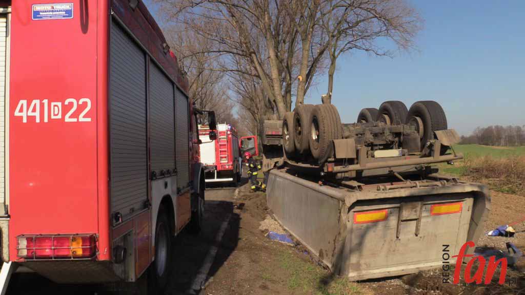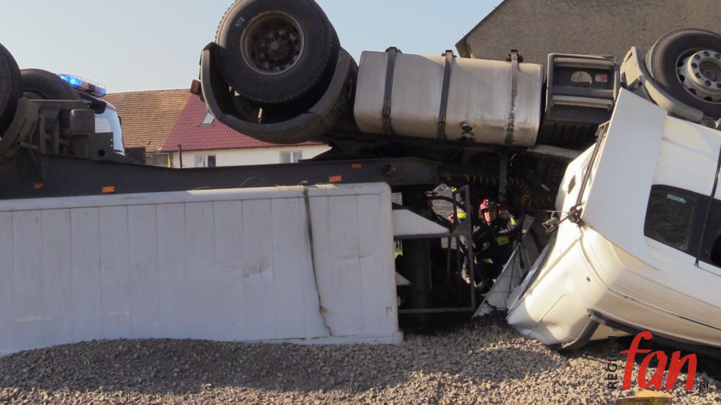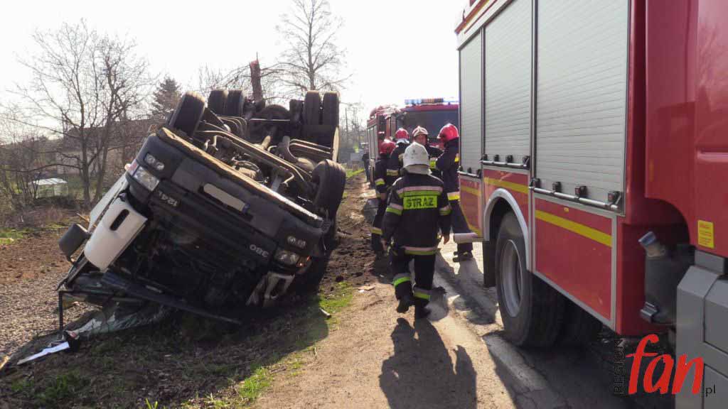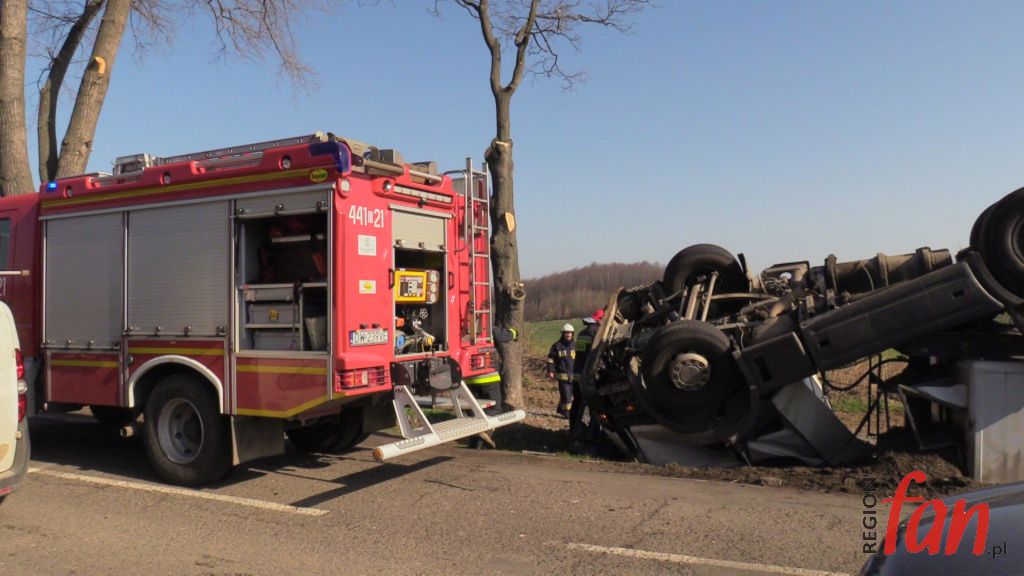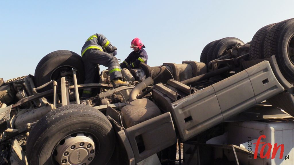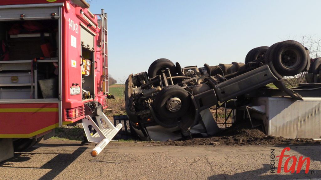 Do zdarzenia doszło podczas wymijania z autem osobowym. Kierowca ciężarówki poczuł, że naczepa „ściąga” go do rowu i już nie miał żadnych szans na jakikolwiek manewr. Na tej trasie jeździ już od dwóch lat, nie spodziewał się aż tak miękkiego pobocza w tym miejscu. Z wywróconego samochodu wyciekało paliwo.