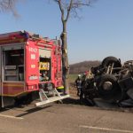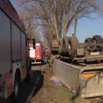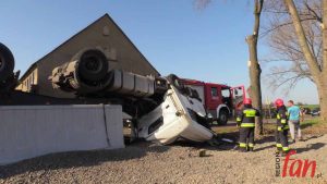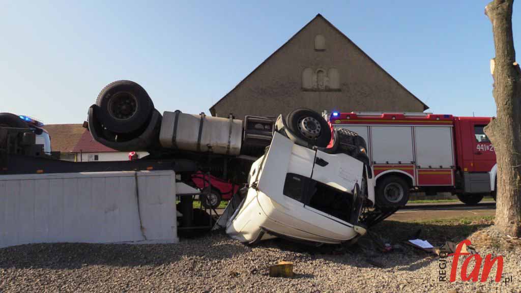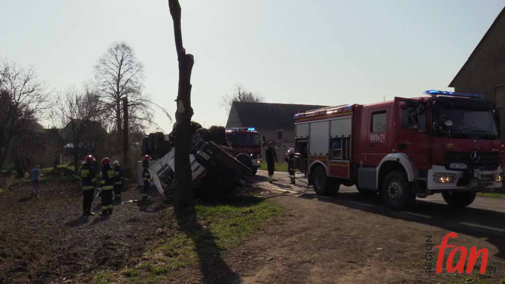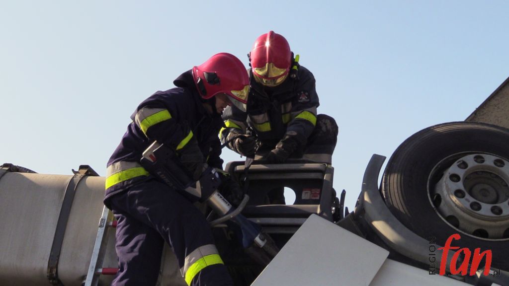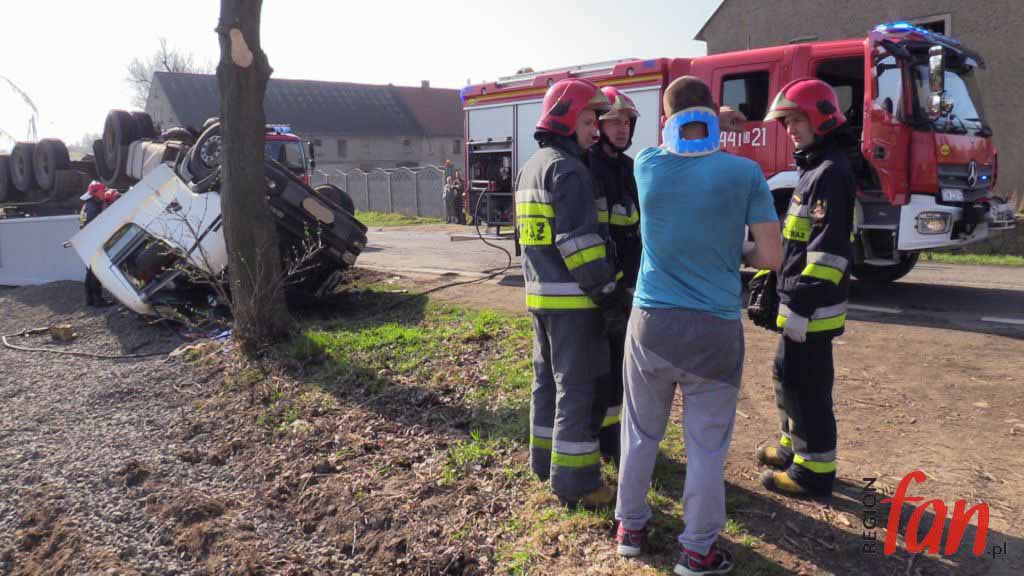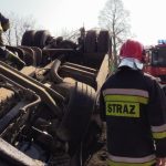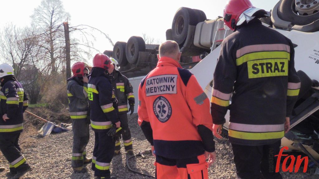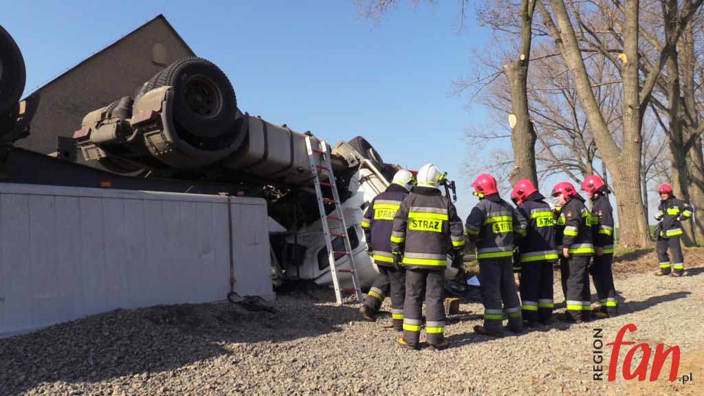 Do zdarzenia doszło podczas wymijania z autem osobowym. Kierowca ciężarówki poczuł, że naczepa „ściąga” go do rowu i już nie miał żadnych szans na jakikolwiek manewr. Na tej trasie jeździ już od dwóch lat, nie spodziewał się aż tak miękkiego pobocza w tym miejscu. Z wywróconego samochodu wyciekało paliwo.