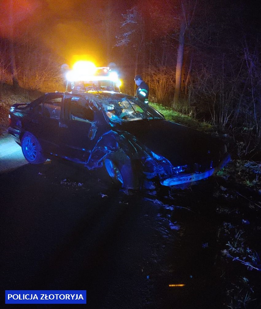 – Przybyli na miejsce policjanci wstępnie ustalili, że 37-letni mężczyzna kierujący samochodem osobowym marki bmw stracił panowanie nad pojazdem, a następnie zjechał do rowu, gdzie uderzył w pień drzewa i dachował. Zdarzenie wyglądało bardzo niebezpiecznie, a kierowca nie był w stanie sam wydostać się z przewróconego auta. Pomogli mu strażacy. Z uwagi na odniesione obrażenia karetką został przewieziony do szpitala. Jak się okazało, był nietrzeźwy. Badanie alkomatem wskazało ponad 1,2 promila alkoholu w jego wydychanym powietrzu – relacjonuje starszy sierżant Dominika Kwakszys, oficer prasowy Komendy Powiatowej Policji w Złotoryi.