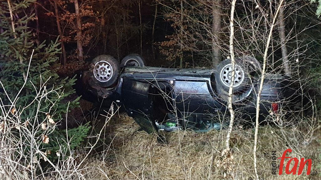 Do zdarzenia doszło ok. godz. 18 na trasie Jawor-Kaczorów. Droga powiatowa przez Lipę to ulubiony skrót jaworzan w kierunku Jeleniej Góry. Właśnie w okolicy Lipy rozpędzona Bora wypadła z drogi wylądowała na dachu w lesie. Potłuczony kierujący rozbił auto i najadł się strachu. Pasażerka wymagała pomocy lekarskiej i została przewieziona do Jaworskiego Centrum Medycznego. Za zbyt szybką jazdę w takich warunkach 23-letni jaworzanin został ukarany mandatem.