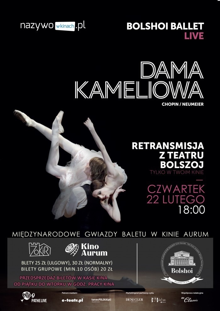 Retransmisja przedstawienia baletowego z Moskwy odbędzie się w ramach cyklu „Aurum na światowej scenie”. Do czerwca tego roku złotoryjscy widzowie będą mieli szansę obejrzeć poza „Damą Kameliową” jeszcze cztery spektakle operowe, baletowe i teatralne z najwyższej półki. To efekt współpracy Złotoryjskiego Ośrodka Kultury i Rekreacji z dystrybutorem www.nazywowkinach.pl.