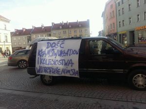 O sprawie mieszkańców ul. Piłsudskiego 26 informowaliśmy po tym, jak w połowie lutego otrzymali nakaz eksmisji z zajmowanego nielegalnie lokalu. W ramach protestu po ulicach miasta jeździł wtedy samochód z rozwieszonym transparentem „Dość kłamstw, układów i kolesiostwa w urzędzie miasta”.