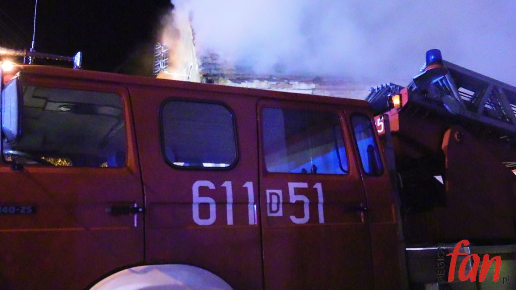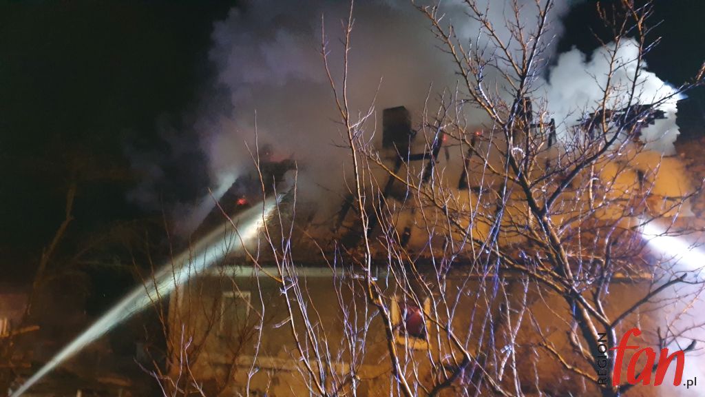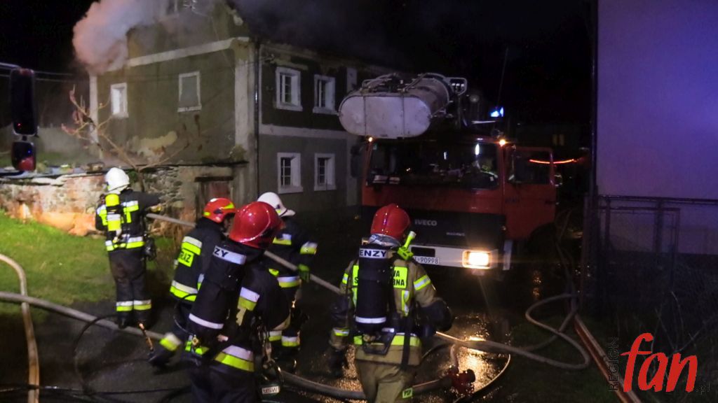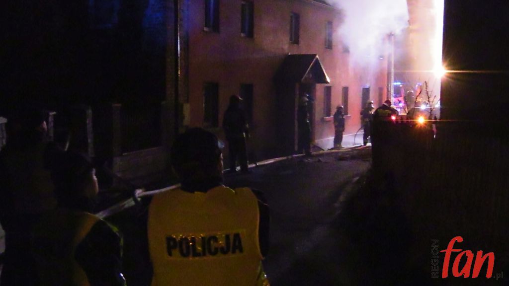 Pożar był mocno zaawansowany i szybko się rozprzestrzeniał. Płonęła piwnica, pomieszczenia na parterze, ogniem zajął się także strych. Niskie ciśnienie w hydrantach nie pozwalało na szybkie uzupełnianie zbiorników w wozach. Strażacy posiłkowali się wysokowydajną pompą, która podawała wodę z pobliskiego stawu.