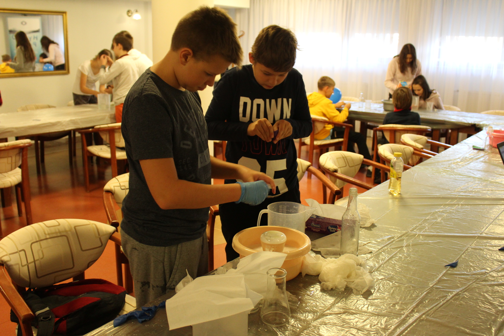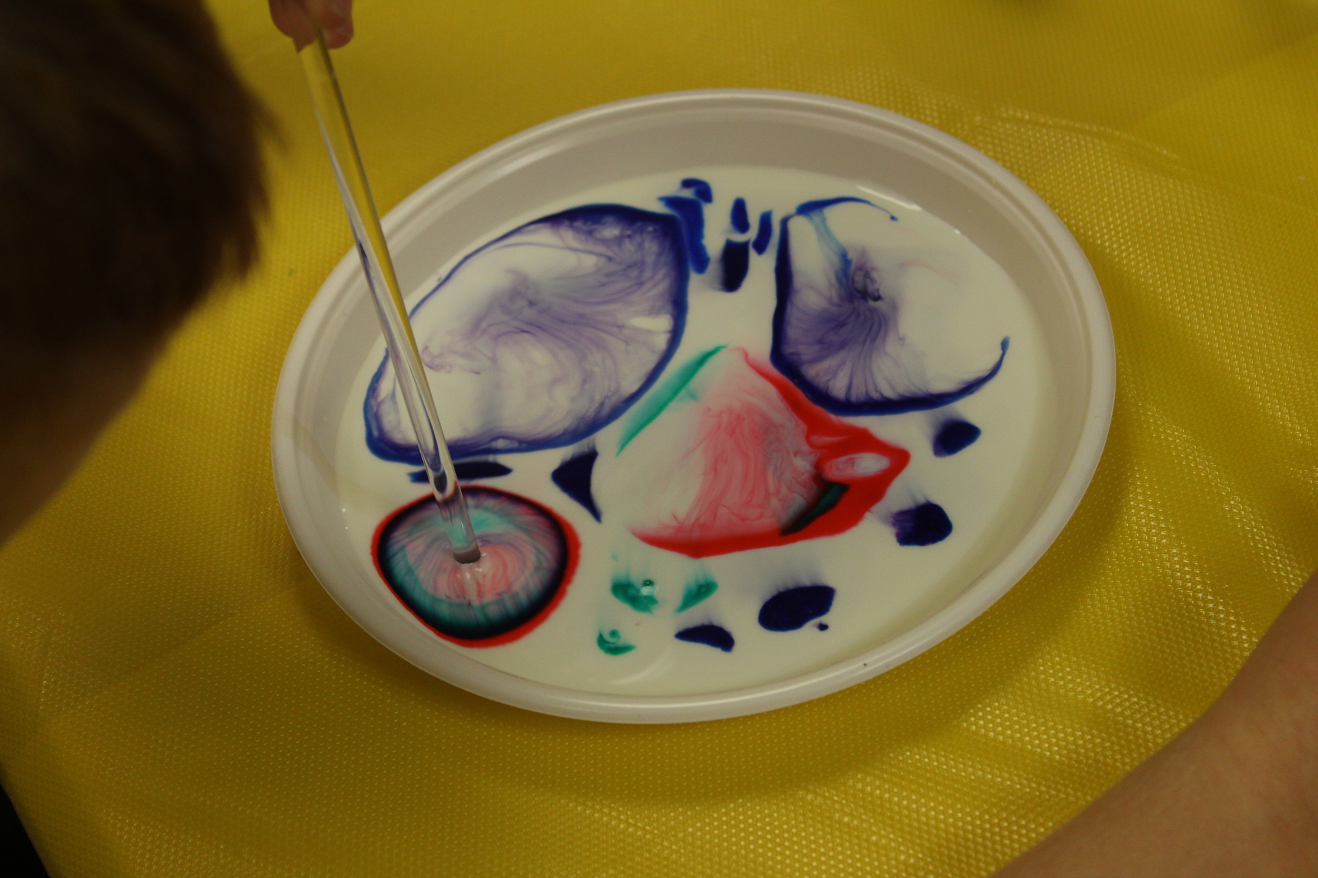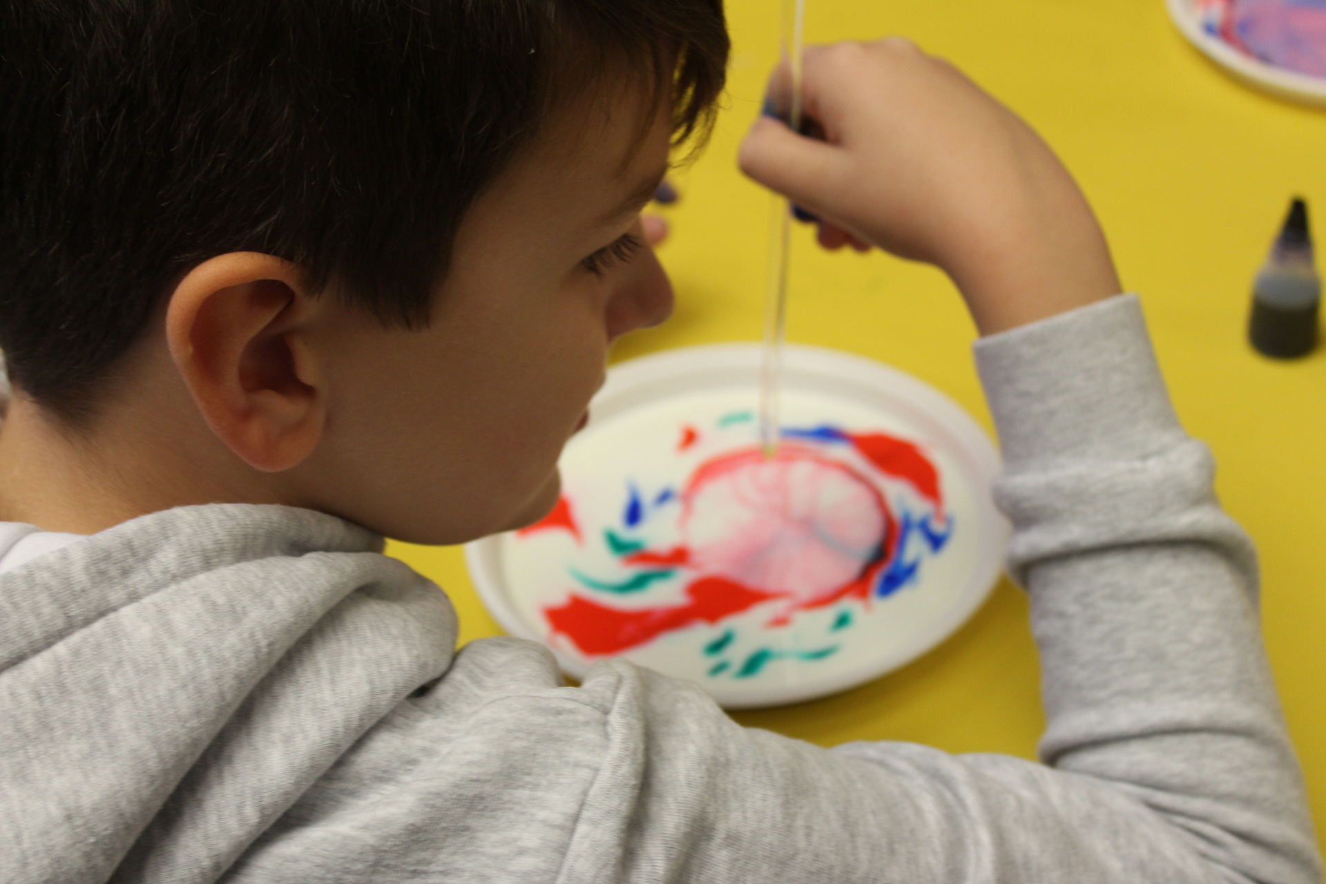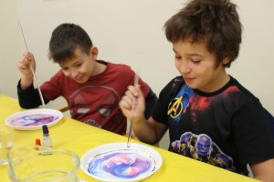 Zajęcia zaspokoją ambicję i młodszych, i starszych. Każdy znajdzie coś dla siebie. U pana Dariusza dzieci z pomocą mleka, atramentu i detergentu mogły wyczarować prawdziwe dzieła sztuki. Poznały też ciekawe doświadczenia z brokatem.