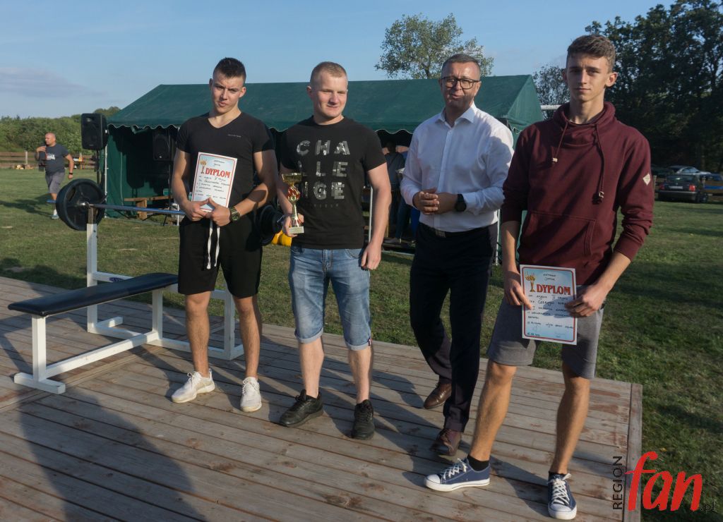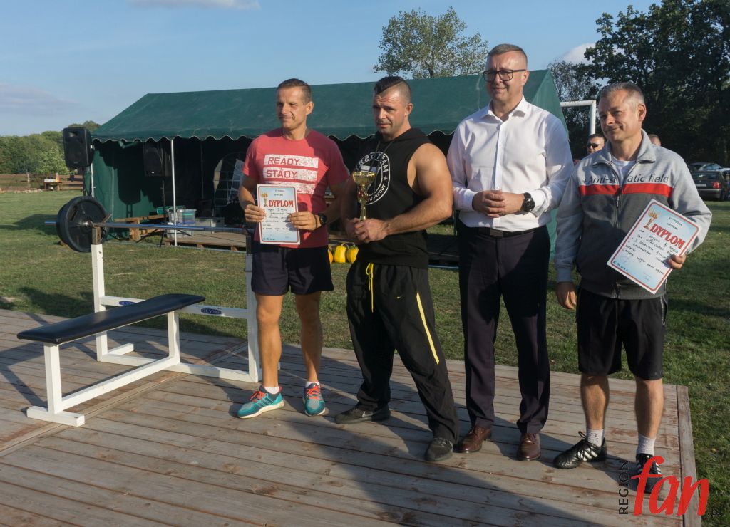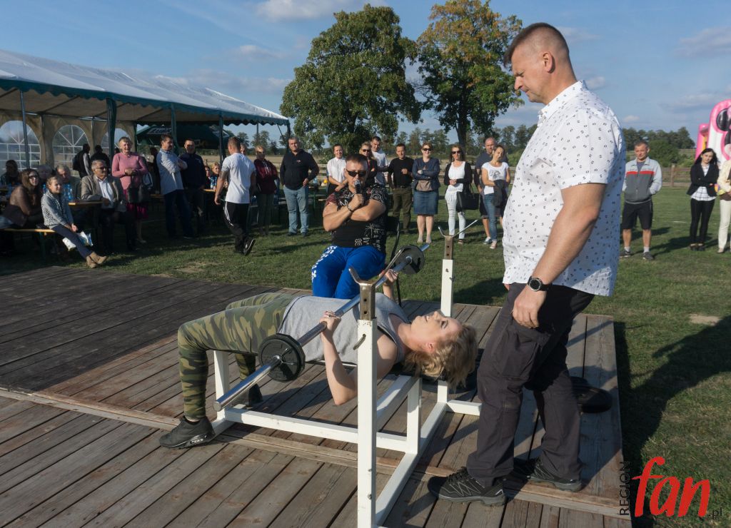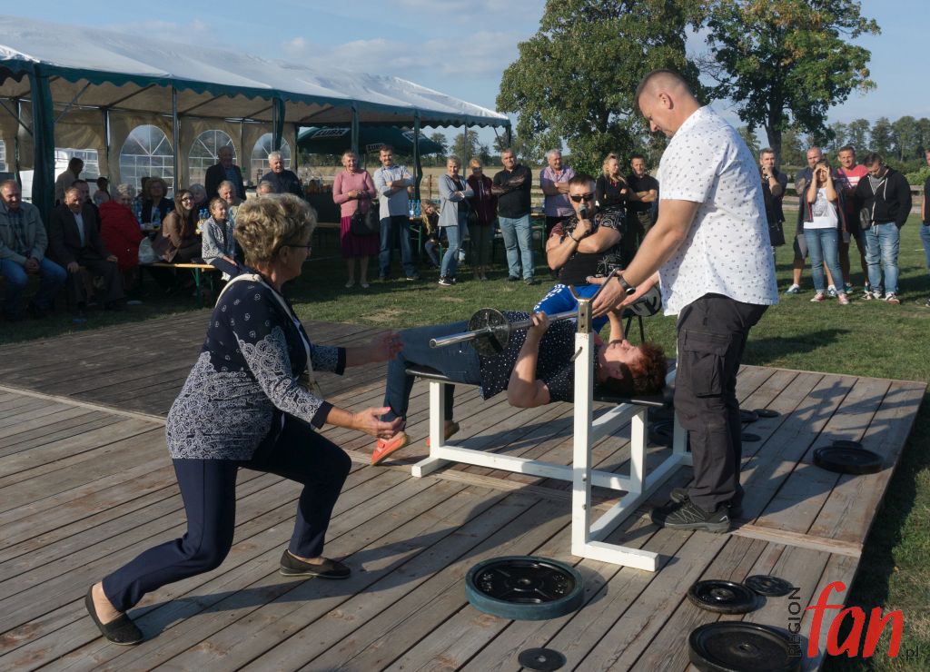 Lokalne święto plonów w Myślinowie (gmina Męcinka) było okazją do przeprowadzenia zawodów w wyciskaniu sztangi leżąc. Obowiązywał regulamin oraz podział na kategorie. Chętnych do zmierzenia się nie brakowało. Oprócz miejscowych siłaczy udział w zawodach wzięli zawodowcy z regionu.