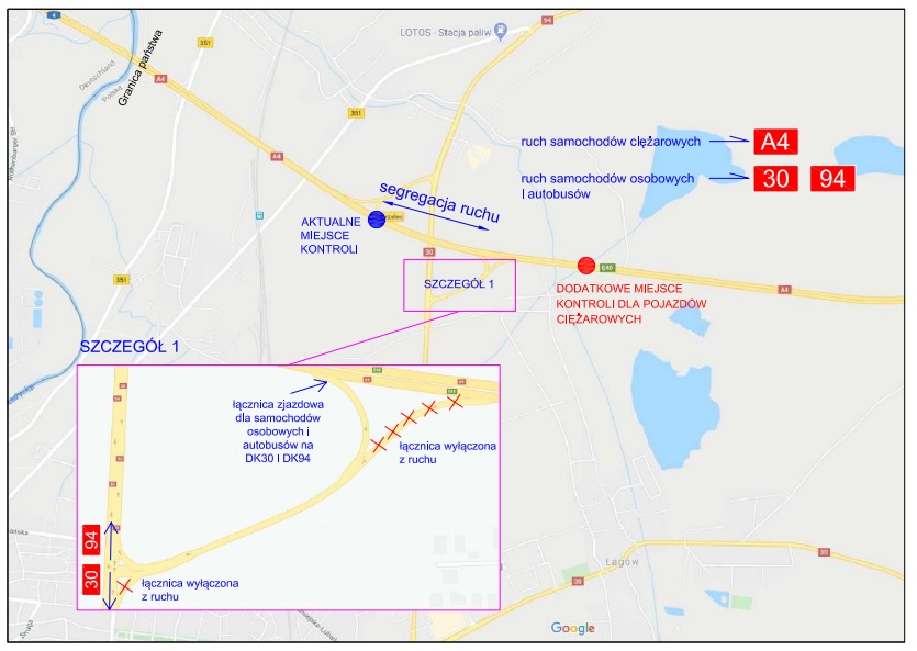 W związku w wprowadzanymi zmianami na wspomnianym przejściu tymczasowo będzie obowiązywała nowa organizacja ruchu. Jak czytamy na stronie Dyrekcji, ruch pojazdów ciężarowych kierowany będzie do punktu kontrolnego na autostradzie A4 (km 2,6 km), pomiędzy węzłem Zgorzelec, a MOP-em Żarska Wieś. Natomiast ruch pojazdów osobowych i autobusów skierowany zostanie na drogi krajowe nr 30 i 94, poprzez węzeł Zgorzelec.