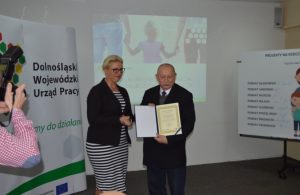 W siedzibie Dolnośląskiego Wojewódzkiego Urzędu Pracy odbyła się uroczystość wręczenia certyfikatów beneficjentom projektów na rzecz wsparcia usług pieczy zastępczej. W gronie 16 zwycięzców znalazł się również projekt przygotowany przez powiat złotoryjski. Certyfikat z rąk dyrektorki Ewy Grzebieniak odebrał starosta złotoryjski Ryszard Raszkiewicz.